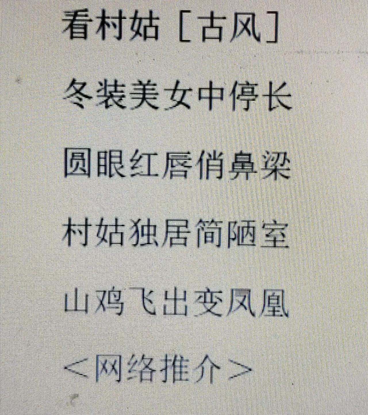 冬装美女中停长 圆眼红唇俏鼻梁 村姑独层简陋室 山鸡飞出变凤凰