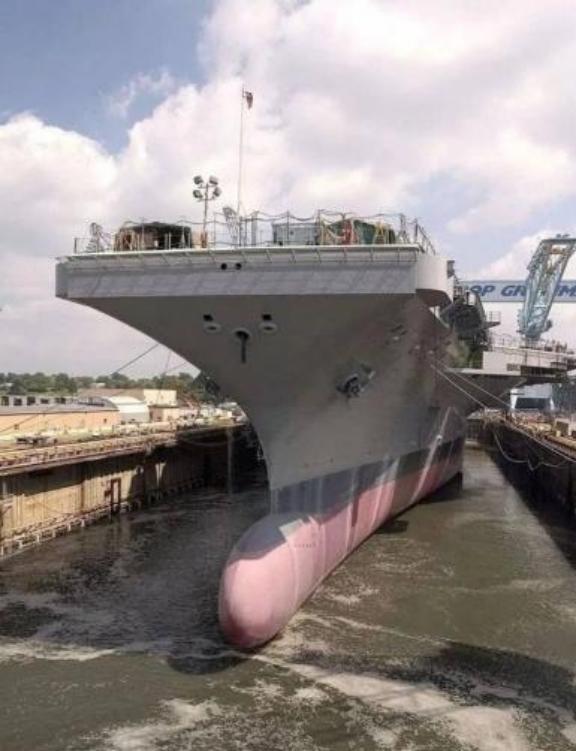 航母上宽下窄,为什么不会发生侧翻?因为水底下的航母,才是航空母舰的技术精髓。航母甲板看着大,其实就是个“轻量级选手”,战斗机、雷达这些玩意儿堆在上面,重量才占全船的15%-20%,真正压舱的“大块头”全在水下藏着:发动机、核反应堆、弹药库,还有几千吨燃油,活像给航母装了双“铁脚”。 航母这玩意儿,看起来上头宽敞得能停飞机场,下头窄溜溜的,总让人担心会不会风一吹就翻个跟头。其实不然,这设计里头藏着大学问。从早年间海军舰艇演变到现在,稳定性一直是头等大事。早期的舰船多是窄长身材,平衡靠整体结构撑着。二战后,核技术一冒头,就把重心往水下挪。 美国那边,里科弗从1946年搞核动力开始,先在潜艇上试水,1954年首艘核潜艇出来,1961年企业号航母服役,把核反应堆搁船底,不仅动力足,还稳当。中国海军学着国际经验,从辽宁舰起步,2019年山东舰入役,2025年福建舰也跟上,电磁弹射加持,在南海多风浪的地方巡弋,船体比例优化,上宽下窄成了标配。这种演变,不是拍脑袋想出来的,而是基于物理原理,浮力和重心匹配得天衣无缝。 说起航母不翻的道理,得从水下那些重家伙讲起。船体下层塞满了核反应堆、发动机,这些大家伙重量占大头,重心自然往下沉。福特级航母甲板宽78米,吃水12米左右,水线宽度41米,底盘稳得像扎根海底。燃油舱和弹药区也搁低位,几千吨油料均匀铺开,避免一边重一边轻。中国山东舰在南海遇上大风浪,靠的就是这个布局,船身晃动小,保持作战状态。 压载水系统是关键,船底几十个舱室,能泵水进出,快速调姿态。减摇鳍装舷侧,根据海况自动调整,增加阻力拉船回正。高强度钢材裹着水下壳体,耐压抗冲击,海水泡着也不锈蚀,确保重量分布匀称。水密舱分成好多隔间,一侧进水不扩散,尼米兹级测试过,单侧上千吨水,只斜5度就止住。传感器网布满底部,监测数据实时反馈,自动响应省人力。整体低重心设计,遵从阿基米德浮力定律,水下体积大,排水量足,上层轻下层实,船像陀螺转得稳。 中国海军的实践证明了这套设计的靠谱。山东舰作为首艘国产航母,梁宽75米,速度31节,在南海执行任务时,面对复杂海况,稳定性突出。福建舰刚入役,带电磁弹射,船底核动力系统更先进,重心控制精细,提升了远洋能力。相比老式舰艇,现代航母水下工程融入了材料科学和自动化,生存力强。 水下部分不光是压重,还得考虑材料和技术。高强度钢如HSLA-65用在船壳,能弹性变形吸收浪击,而不是硬碰硬断裂。防锈层保护钢材,海水腐蚀不影响平衡。要是锈坏了,底重不均,风险就上来。分舱设计是防倾翻的保险,就算局部损坏,其他舱浮力顶住。压载系统灵活,泵机响应快,山东舰在12级台风中调整多次,倾斜才2.8度。减摇鳍和传感器配合,像船的智能助手,海况变了立马应对。核反应堆双重作用,提供动力还稳船,弹药库低置减上层负担。整个体系,是工程学的集结,从计算浮力到选材,都针对海上环境。 从历史角度看,航母稳定设计经历了从经验到科学的转变。企业号作为首艘核航母,水下核芯让续航长,稳定性高。福特级继承了尼米兹级的优点,电磁弹射减轻重量,船底更厚实,重心低至水线下。船满载飞机时,浪来自动恢复,像不倒翁。中国福建舰借鉴这些,融入本土元素,南海海试中表现稳健。