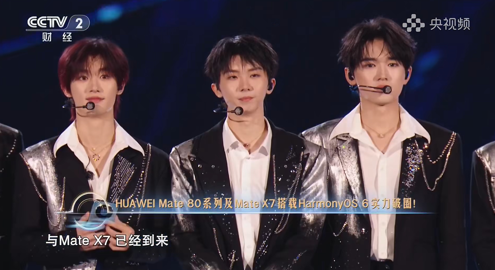 时代少年团,变成了华为Mate80系列、MateX7、鸿蒙系统的带货现场央视