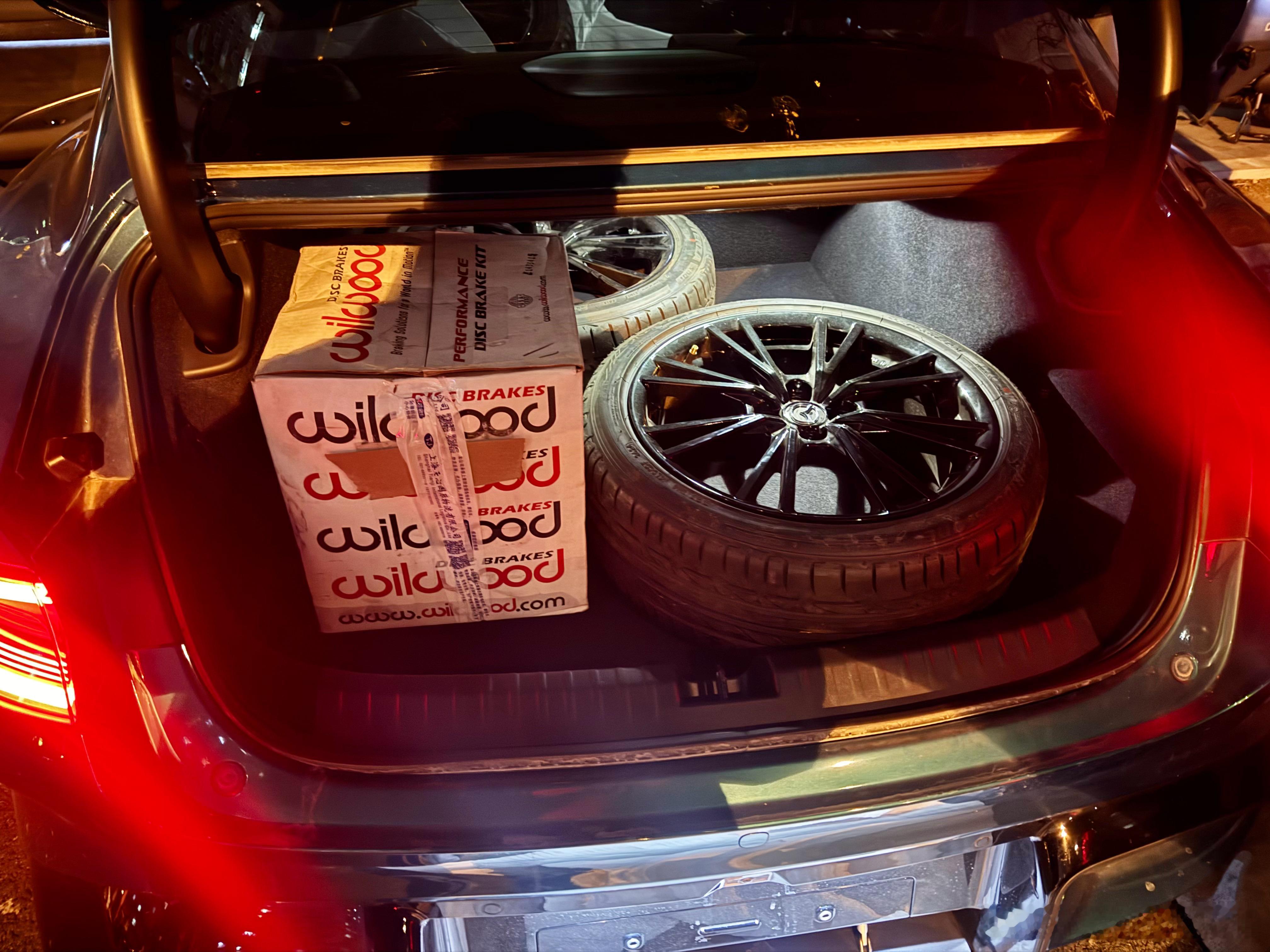 小米SU7 Ultra这车空间这么大吗?!图1、2是同样东西装在本田杰德里,基本上满了,我突然好奇说放su7里试试,结果4个17寸轮子带胎、一套避震一套刹车居然毫无问题!后排一放倒,实用性拉满。防杠:都是原厂件儿、卖家用的改装盒包装,感谢新车到手就改的大哥废铁价卖我,明天皮卡拉、会安全固定,纯摆拍,一套东西来回搬四遍,最后发现储物空间最小的是我皮卡…凯文聊车