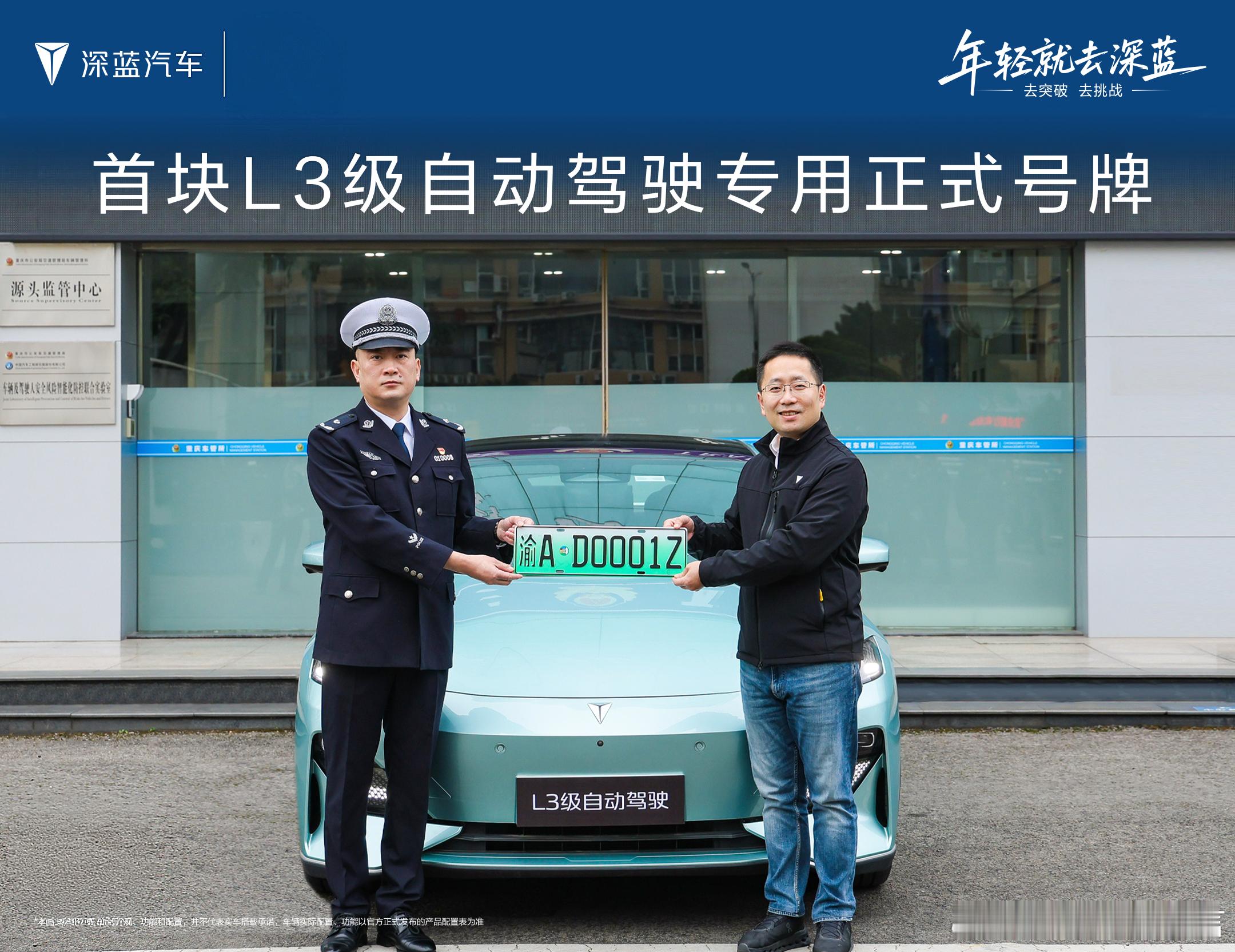 渝AD0001Z,这块车牌可不简单,这是首块L3级自动驾驶专用正式号牌。基于对深蓝汽车技术实力与安全体系的高度认可,这个号牌正视挂在了一台长安汽车旗下深蓝品牌车型上。从这开始,中国自动驾驶技术正式进入L3时代,深蓝汽车也率先进入L3级自动驾驶技术的合规落地与真实应用。深蓝汽车L3自动驾驶将在京渝上路试点