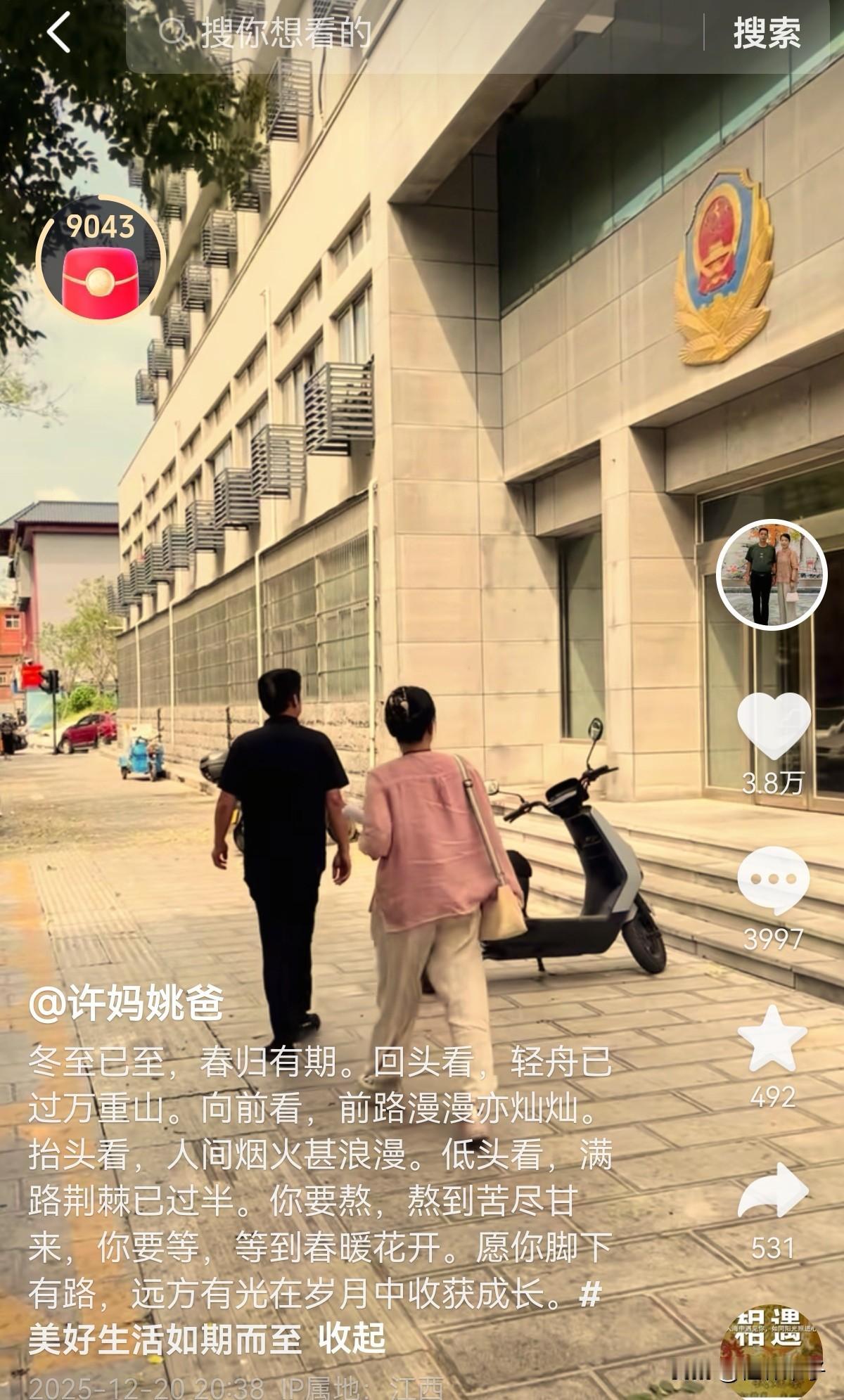 许敏冬至节发文: 冬至已至, 春归有期, 回头看, 轻舟已过万重山, 向前看, 前路漫漫亦灿灿! 抬头看, 人间烟火甚浪漫。 低头看, 满路荆棘已过半。 你要熬, 熬到苦尽甘来。 你要等, 等到春暖花开…… 冬至节如期而至, 许敏夫妇发视频动态仍奔赴在路上, 那些图, 那些路, 那些细节, 让人破防禁不住泪目! 6年了, 其中的艰辛与苦楚, 不言而喻, 砥砺前行的脚步, 只要执着有方向不踯躅, 每走一步, 犹如沙漠中前行, 希望在不断的寻中失去, 憧憬在不断的失去中再见, 终究会看见绿洲! 即便 许敏追真的路再难, 因有小星星们的陪伴, 永不孤单, 因为不是她一个人的战役。 即便 许敏在沧海一粟的人生里 耗尽自己的心血, 真相仍在灯火阑珊处若隐若现, 没有浮出水面的真相, 其实在网友心中 守得云开见明月!