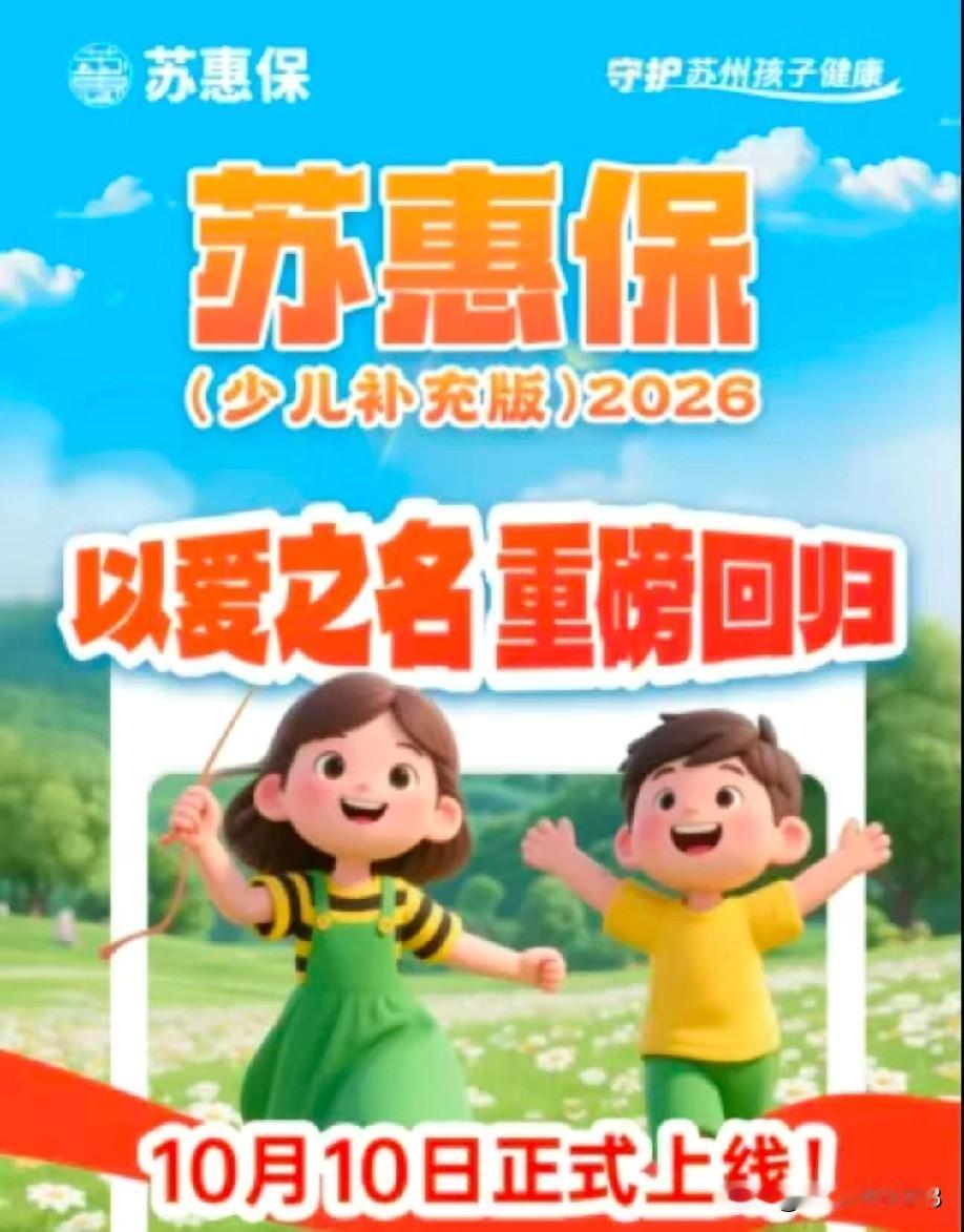 做父母的,都是想每时每刻,都把最好的最精华的,全部奉献给孩子们,我们给孩子买最好的,为孩子们投保苏惠保少儿补充版,也为自己和家人投保了成人版“苏惠保”,就是最好的健康呵护,家庭的欢声笑语也会越来越丰富多彩。 苏州家长们最近都在抢购苏惠保少儿补充版,因为医保个账能支付,没有一丝现金压力。 苏州市职工医保参保所有人,都可以尽情的直接用个人账户余额,为子女缴费,实时划扣,无需额外掏钱,省心又省钱!为所有家庭送去健康的温暖,让每家每户的欢声笑语多了健康的保护。 800万保额,覆盖全场景,门急诊、住院、特定疾病、特药(含CAR-T)、质子重离子治疗……大病小病全能保,孩子健康不再“裸奔”,孩子们健康温暖越来越全面,孩子们的笑声越来越纯真! 非既往症少儿在本市医保定点社区医院就诊,门急诊及住院费用0免赔;特定疾病特药及质子重离子治疗100%赔付,家庭负担直降!让每个家庭都有呵护孩子们健康的能力,孩子们的健康快乐,就是每个家庭幸福的最好的动力。 不限健康状况,即使孩子有既往病史,也能按约定获赔,保障还不设门槛!让最需要健康呵护的孩子们,享受最大的帮助,就是给孩子们最暖心的健康陪伴。 保费分档,按需选择更划算 0-5周岁:880元/年 6-12周岁:650元/年 13-17周岁:550元/年 每天不到2元,给孩子一份全年安心,健康快乐陪伴每一天,生活的滋味才会让家庭幸福越来甜蜜。 缴费截止日期是2025年12月31日,保障期限为2026年全年,行动要快,为孩子的健康加一份“防护盾”!让孩子们的健康成长,养成良好的习惯,就是家庭幸福最大的前进动力!