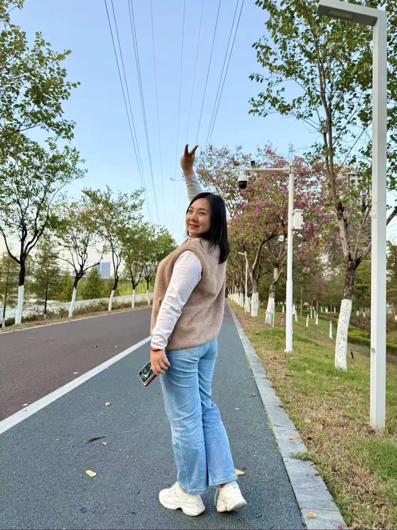 阳光明媚的午后,公园小道上欢快地奔跑,微风拂面,心情舒畅。