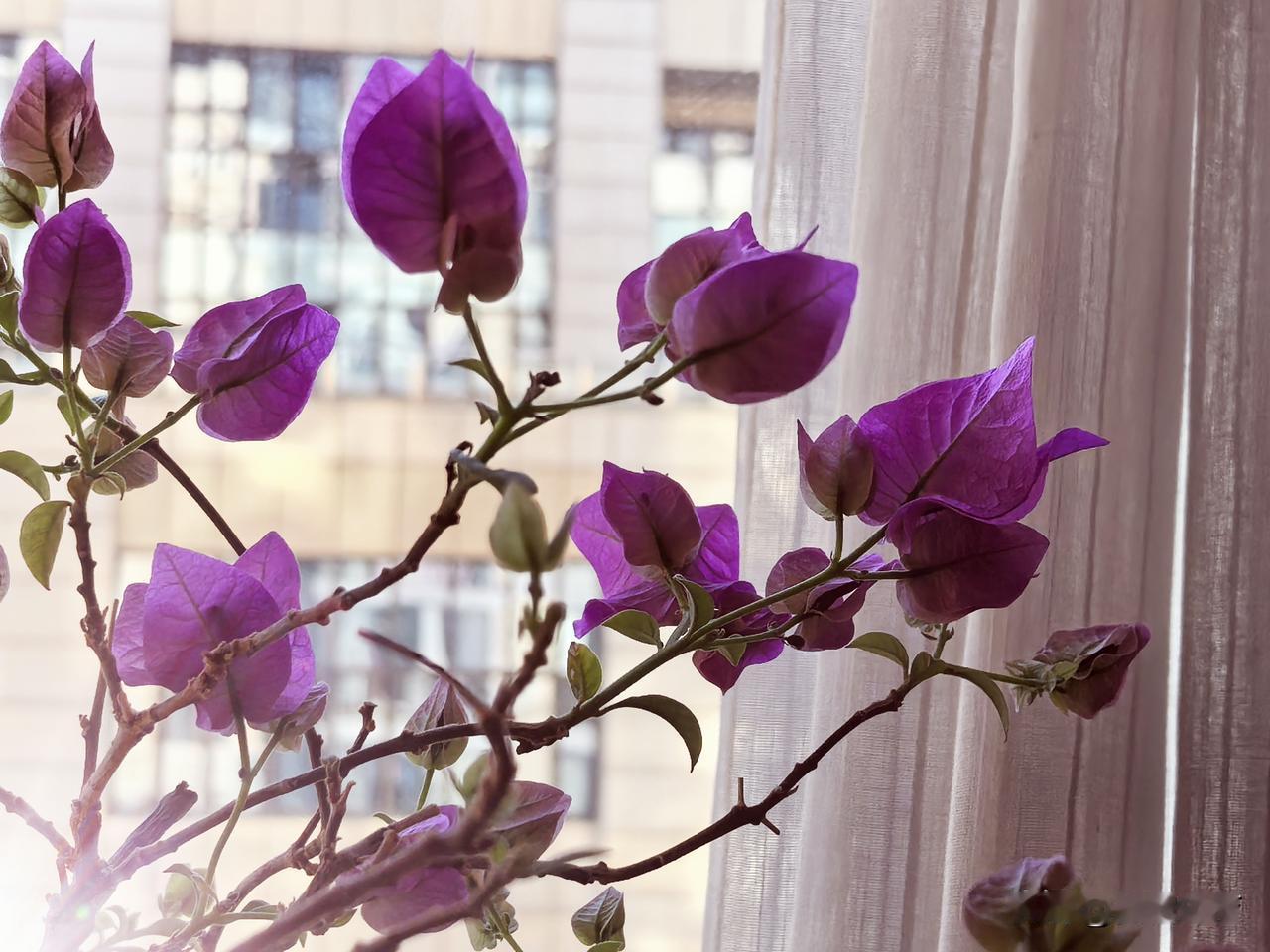 三角梅需要掉尽每一片叶子,才开始萌发新的花朵。