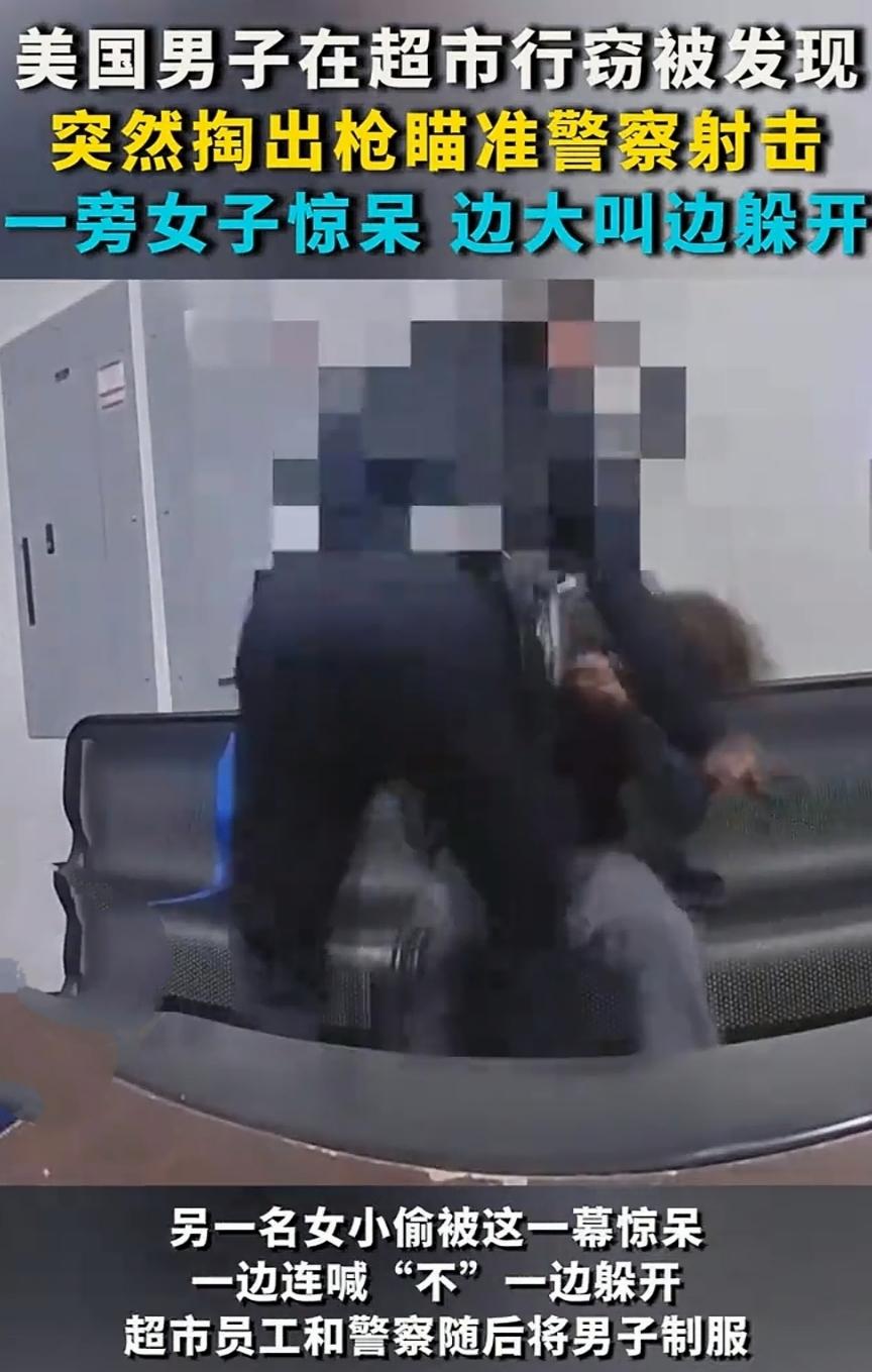 简直倒反天罡!美国一对男女去超市行窃,被发现后,被带到员工办公室,不料,其中的男子看到警察来了后,竟然突然掏枪,瞄准警察准备开火,一旁女子惊呆,边大叫边躲开,超市员工冲过去将男子按住,并将男子手中的枪打落在地,警察随后赶来,一脚将男子制服,然后连续两拳将男子揍懵! 这对男女里,男的叫沙恩·纽曼,才21岁,女的叫卡特里娜·杰弗里,俩人就是因为在卖场里顺手牵羊被抓的。被带到办公室后,本来大家都以为会是常见的场面,要么是俩人悔过认错,要么是狡辩几句,再不然就是安安静静等着警察来开单子。 办公室就几平米大,空间挺逼仄的,当时纽曼坐在椅子上,还戴着手套一个劲地啃手指,看着就挺焦虑的,但谁也没往更坏的地方想,只当是小偷被抓后的正常慌张。 没过多久,一名穿制服的警员就赶了过来,按惯例坐在纽曼对面准备问话。可就在警员刚坐稳,还没说上两句话的时候,纽曼的身体突然一下子绷紧了,那架势看着就不对劲。 紧接着,他像被踩了尾巴似的猛地转过身,刚才还在啃咬的手迅速伸进口袋,再掏出来的时候,手里已经多了一把手枪,黑洞洞的枪口直接就对准了警察的胸膛。这一系列动作快得离谱,前后不到两秒,办公室里的人都没反应过来。 旁边的女同伙杰弗里看到这一幕,直接吓得魂飞魄散,尖叫着往旁边躲,整个人都懵了,完全不知道该怎么办。而被枪口瞄准的警察,显然也没料到一个小偷居然敢当场袭警,瞬间就僵在了原地。就在这千钧一发的时候,纽曼没有任何犹豫,直接扣动了扳机。办公室里的空气仿佛都在这一瞬间凝固了,所有人都等着那震耳欲聋的枪声响起。 可预想中的枪声并没有来,取而代之的是一声清脆又尴尬的“咔哒”声,原来是手枪卡壳了,击锤撞到了空枪膛上。这短短一秒的空当,直接给了在场所有人第二次生命。 旁边一名穿着白衬衫的沃尔玛员工,反应比训练有素的警察还快。他就是个普通打工人,领着时薪干活的,可在求生本能的驱动下,愣是爆发出了惊人的勇气,没等其他人反应过来,就猛地冲了上去,一巴掌狠狠拍在纽曼拿枪的手上,直接把那把“夺命枪”拍落在了地上。 这时候,被死神擦肩而过的警察也终于从震惊中缓过神来,哪里还顾得上什么执法仪态。他立马起身冲上去,一脚狠狠踹在纽曼的后腰上,紧接着借着身体的重量,用膝盖死死顶住纽曼的腹部。刚才还凶神恶煞、敢当众袭警的纽曼,瞬间就被按在了布满灰尘的地板上。警察怕他还有其他同伙,或者身上藏着别的凶器,根本不敢大意,见纽曼还在挣扎扭动,直接挥起拳头,连续两拳砸了下去,一下就把纽曼揍懵了,彻底失去了反抗能力。 等纽曼被彻底制服,现场完全控制住后,警方随后对俩人进行了搜查,这一搜可把所有人都惊到了。原来这纽曼根本不是普通的小偷,而是个有着重罪前科的亡命徒。按照美国法律,他这种有重罪记录的人,连碰枪都是违法的,更别说随身携带了。除了那把卡壳的手枪,警方还从他身上搜出了整整50颗摇头丸。而那个吓得尖叫躲闪的女同伙杰弗里,也不是什么简单角色,警方在她的口袋里搜出了9毫米口径的子弹。 这时候大家才后知后觉地感到后怕:要是杰弗里的子弹提前装进了纽曼的枪里,要是那把枪没有卡壳,刚才警察那一脚踹出去,可能就不是制服歹徒的动作,而是他人生的最后一个画面了。想想就觉得脊背发凉,在超市这种本该安心购物的地方,旁边居然坐着两个随时可能动枪杀人的亡命徒,这种荒诞的事,现在在美国好像越来越常见了。 就说2024年吧,美国已经有超过1.6万人死在枪口下,近500起大规模枪击案,把学校、商场这些本该安全的地方都变成了高危区域。枪支泛滥成这样,普通人的安全根本就没什么保障,脆弱得像一张纸。你永远不知道,旁边那个因为一点小事就跟你起争执的人,手里是不是就握着一把能随时打响的枪。 这次的事虽然最后有惊无险,纽曼因为谋杀未遂、袭警、贩毒等多项重罪被抓,等待他的肯定是严厉的法律制裁,但这根本算不上什么值得庆祝的胜利。毕竟这次能活下来,全靠运气,靠的是手枪卡壳这个小概率事件。 这反而更让人觉得无奈,一个社会的安全,居然要靠这种侥幸来维系。那个超市员工的勇敢值得肯定,警察最后也制服了歹徒,但这些都掩盖不了整个社会安全体系的无力。真正的安全感,从来都不该建立在歹徒忘记上膛的侥幸上。这次是空响,谁也不敢保证下次,那该死的击针会不会再落空。