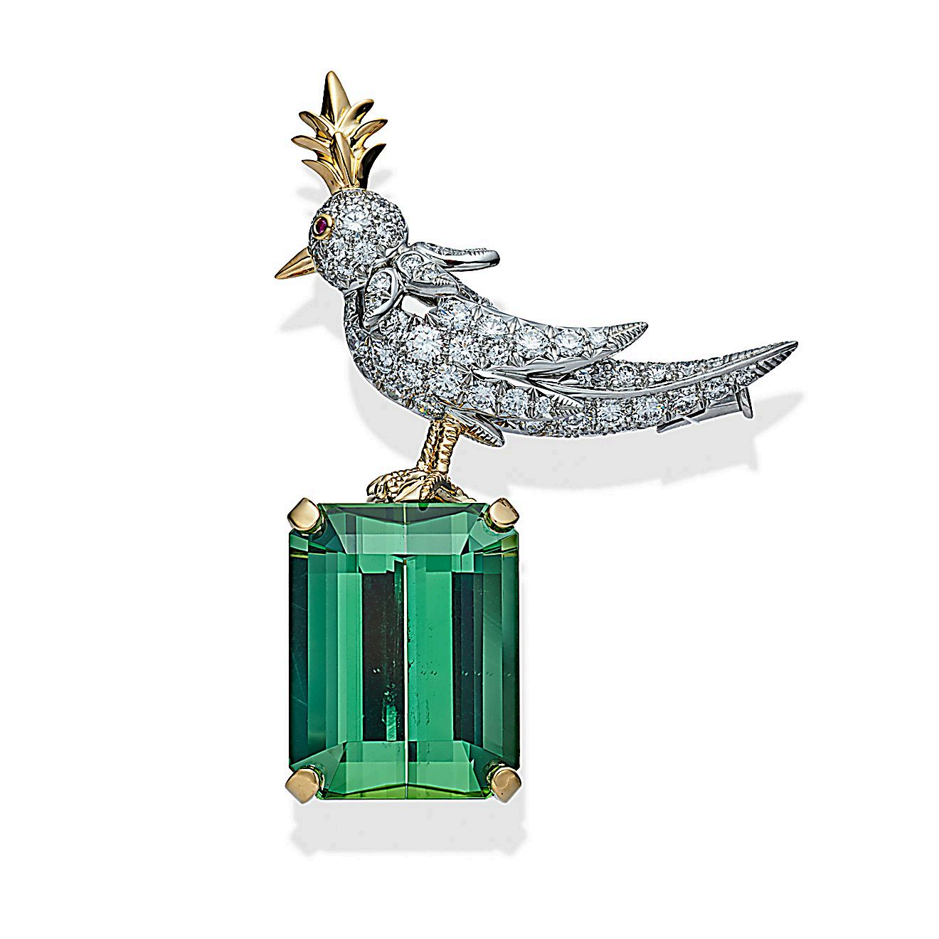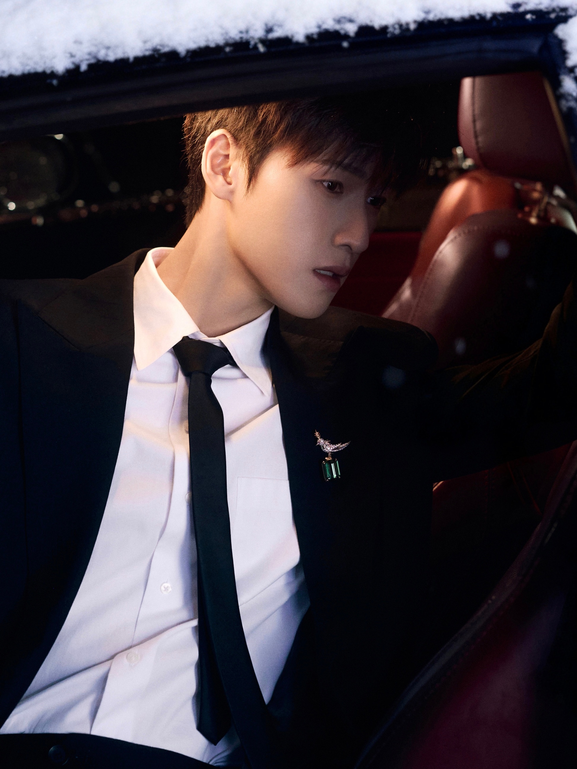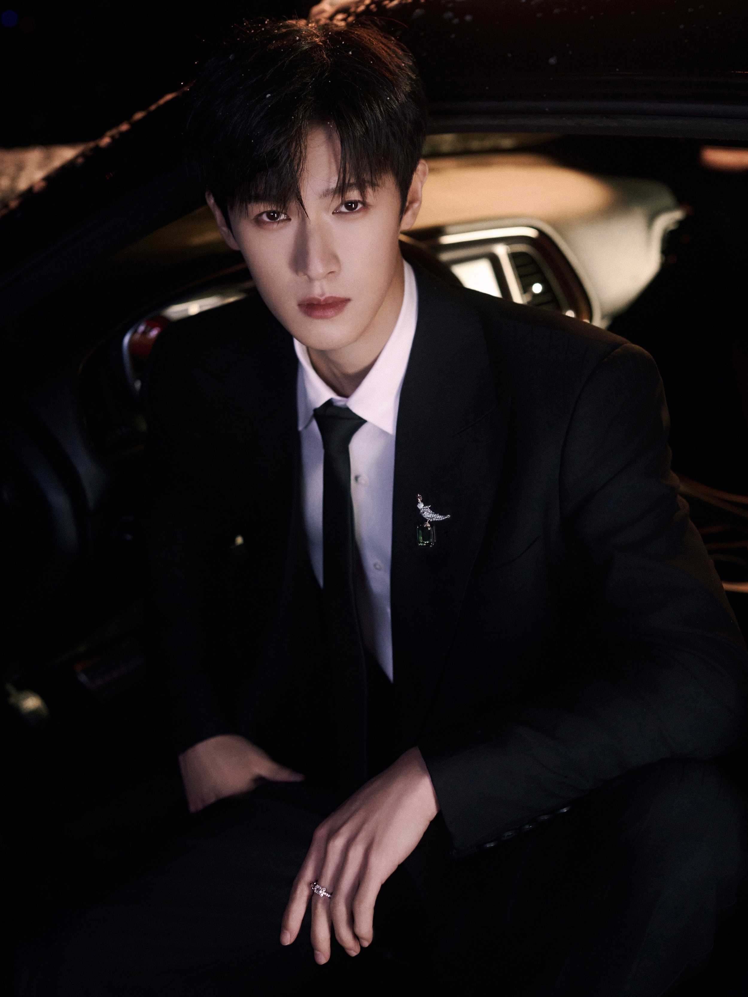 李昀锐星光大赏造型,身穿经典黑色西装,佩戴蒂芙尼让·史隆伯杰高级珠宝系列(Jean Schlumberger by Tiffany) “石上鸟”绿碧玺胸针,矜贵又迷人~