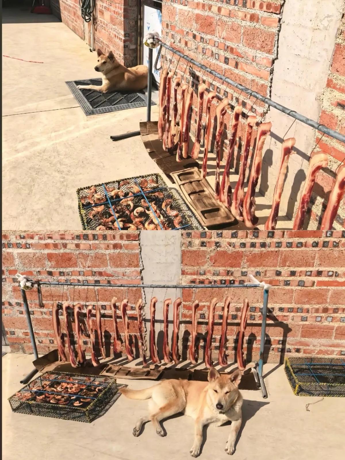 “回家必须加鸡腿!”广东,一女子在院子里晾腊肉和虾仁,因为怕有老鼠偷吃,还特意支了个架子,可她白天上班还是不放心,就打开监控查看,结果却发现自家的狗狗竟然趴在腊肉前面,不仅没偷吃,还四处观察帮忙盯着。女子看的心里暖暖的。网友:不愧是老祖宗严选的“大黄” 一到这个季节,广东这边就到了晾腊味的好时候,家家户户院子里挂着腊肉、腊肠,香味飘老远,不光是人爱吃,也特别招各种“贪嘴的小家伙”。最近就有位广东女士,特意准备了腊肉和虾仁,打算晾好留着过年吃,为了防止这些好东西被老鼠偷吃,她可真是费了不少心思。 她专门在院子里搭了个高高的架子,把腊肉和虾仁都铺在上面晾着,怕老鼠从缝隙里钻进去,还在架子周围仔细围了一圈防鼠铁网。按理说,这样的防护措施已经挺到位了,但她心里还是不踏实。毕竟这些都是精心准备的年货,而且白天要去上班,家里没人盯着,总担心出点意外。 临出门前,她看着自家那只在院子里溜达的中华田园犬,也就是大家常说的大黄狗,半开玩笑半认真地跟它嘱咐了几句,大概意思就是家里没人,你可得帮着看好这些肉,别让别的动物过来霍霍,你自己也不能嘴馋偷吃。其实说这话的时候,她压根没真指望这只狗能听懂,更没觉得它能真的守住。 在她看来,腊肉的香味那么浓,指望一只狗对抗本能不去偷吃,简直是天方夜谭,跟狗狗说这些,更多的是寻求一种心理安慰。可谁也没想到,就是这几句随口的嘱咐,竟然被狗狗记在了心里,还做出了让她无比感动的事。 白天在办公室上班的时候,她心里的石头一直悬着,坐立不安的,实在忍不住了,就拿出手机连接了家里的监控,想看看院子里的情况。点开监控的那一刻,屏幕里的画面让她瞬间愣住了,紧接着心里就涌上一股暖流,眼眶都有点发热。 她原本预想的画面,要么是有老鼠、野猫之类的过来偷吃,要么是狗狗在院子里呼呼大睡,完全不管不顾。可实际监控里的场景,却跟她想的完全不一样。只见自家的大黄狗,乖乖地趴在腊肉架子最前面的位置,虽然是趴着的,但姿态一点都不放松,明显是在认真值守。 它的两只耳朵直直地竖在那里,时刻保持着警觉,眼神就像雷达一样,不停地在院子的各个角落扫来扫去,生怕错过任何风吹草动。那些散发着浓郁咸香的腊肉和虾仁,距离它的鼻子还不到半米远,可它硬是半点都没动心,连头都没回一下,安安静静地守在那里,活脱脱像一尊尽职的“门神”。 她越看越觉得暖心,干脆点开了监控回放,想看看自己上班的这一整天,狗狗是不是一直这样守着。这不看不知道,一看更让她感动了。原来她不在家的这一天,院子里并不太平,还真有“不速之客”想来打腊肉的主意。 监控里清楚地记录着,有一只不知道从哪儿窜出来的野猫,盯着架子上的腊肉和虾仁,眼睛都直了,慢慢靠近后还摆出了要起跳的姿势。就在这关键时刻,原本趴在地上的大黄狗瞬间弹了起来,冲着野猫凶巴巴地吠了几声,那凶猛的架势,直接把野猫吓得魂飞魄散,扭头就跑,再也没敢回来。 除了野猫,连最隐蔽的威胁,老鼠也出现过。监控捕捉到有几只老鼠鬼鬼祟祟地从墙角探出头,想寻找防护网的漏洞,结果还没等它们靠近架子,大黄狗一个凌厉的眼神扫过去,紧接着微微起身,做出了威慑的动作,老鼠吓得立马缩了回去,钻进洞里再也不敢露头了。 整整一天下来,大黄狗就守在院子里那一小块地方,忠实执行着主人出门前的嘱咐,把看家护院的活儿干得滴水不漏。晚上下班回到家,她第一时间就去看院子里的腊肉和虾仁,发现所有东西都完好无损,甚至连摆放的位置都没挪动过。 再看看依旧守在腊肉架子旁的大黄狗,它见主人回来了,才慢悠悠地站起身,摇着尾巴走过来蹭了蹭她的手。那一刻,她心里的感动再也抑制不住了,立马就想着“回家必须给它加鸡腿!不,得加好几个大骨头!”当晚,她就给狗狗安排了豪华加餐,把好几根大骨头端到它面前。 看着狗狗吃得狼吞虎咽,尾巴摇成了螺旋桨,她摸着狗狗的头动情地说,以后院子的安全重任就全权交给它了。狗狗似乎也听懂了主人的话,一边吃着骨头,一边时不时用头亲昵地蹭着她的手,画面特别温馨。 后来她把这段监控视频发到了网上,很快就引来了不少网友的评论。大家都被这只忠诚的大黄狗打动了,纷纷留言夸赞:“不愧是老祖宗严选的大黄!靠谱又忠诚”“这狗也太通人性了,主人没白疼它”“有这样的狗狗看家,比什么防护措施都管用”。 其实很多人都觉得土狗不如品种狗聪明,但只有养过的人才知道,中华田园犬身上有一种特别纯粹的忠诚和契约精神。在它们的世界里,主人的嘱托就是最重要的事,哪怕有美食诱惑,也会坚守承诺。对这位女士来说,比起冰冷的铁网和监控,大黄狗带来的,才是最让人踏实的安全感。