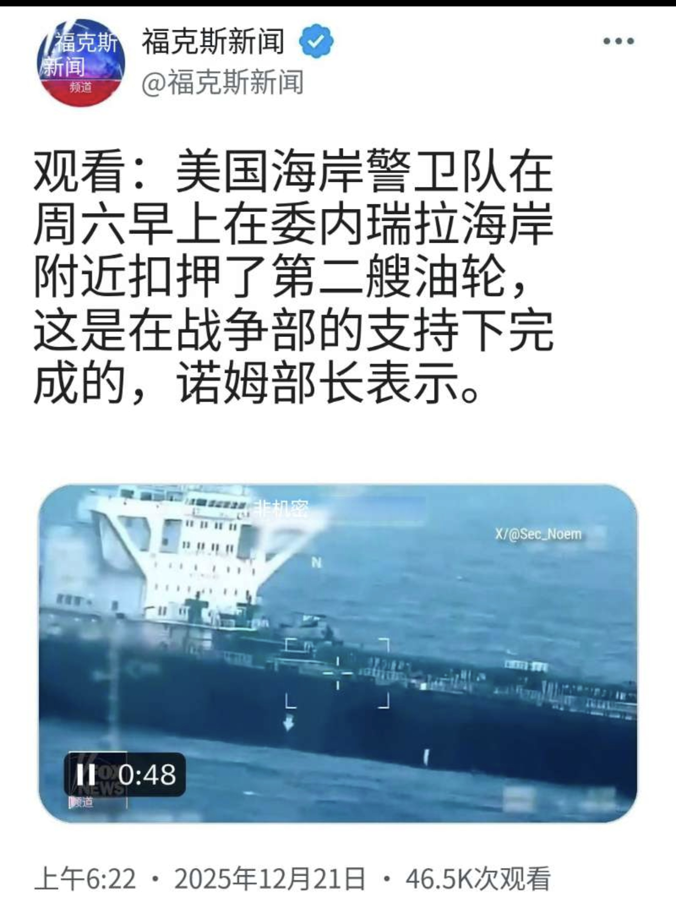 委内瑞拉一搜油轮被美国军方扣押载有200万桶原油,据说,这搜油轮上的油,产权是中国公司的……
