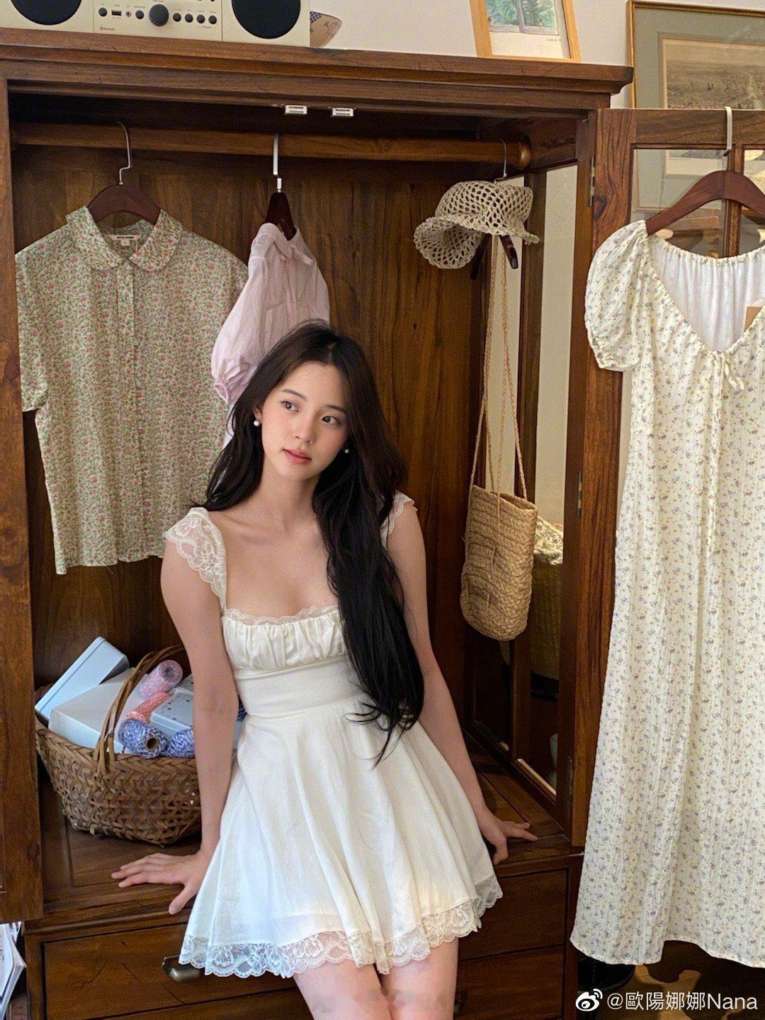但凡张天爱身上有一点赘肉都穿不了这个衣服