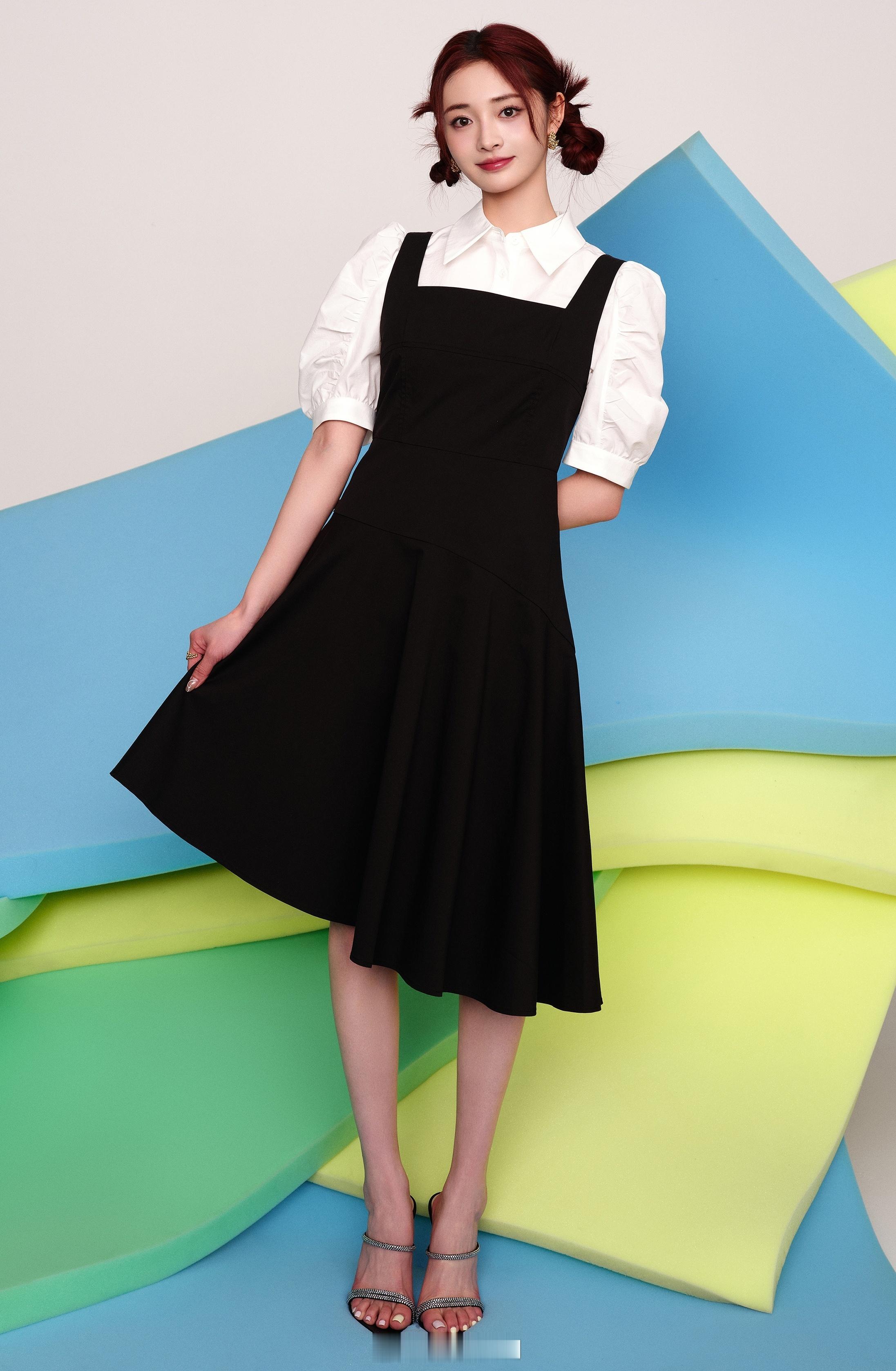 但凡张天爱身上有一点赘肉都穿不了这个衣服
