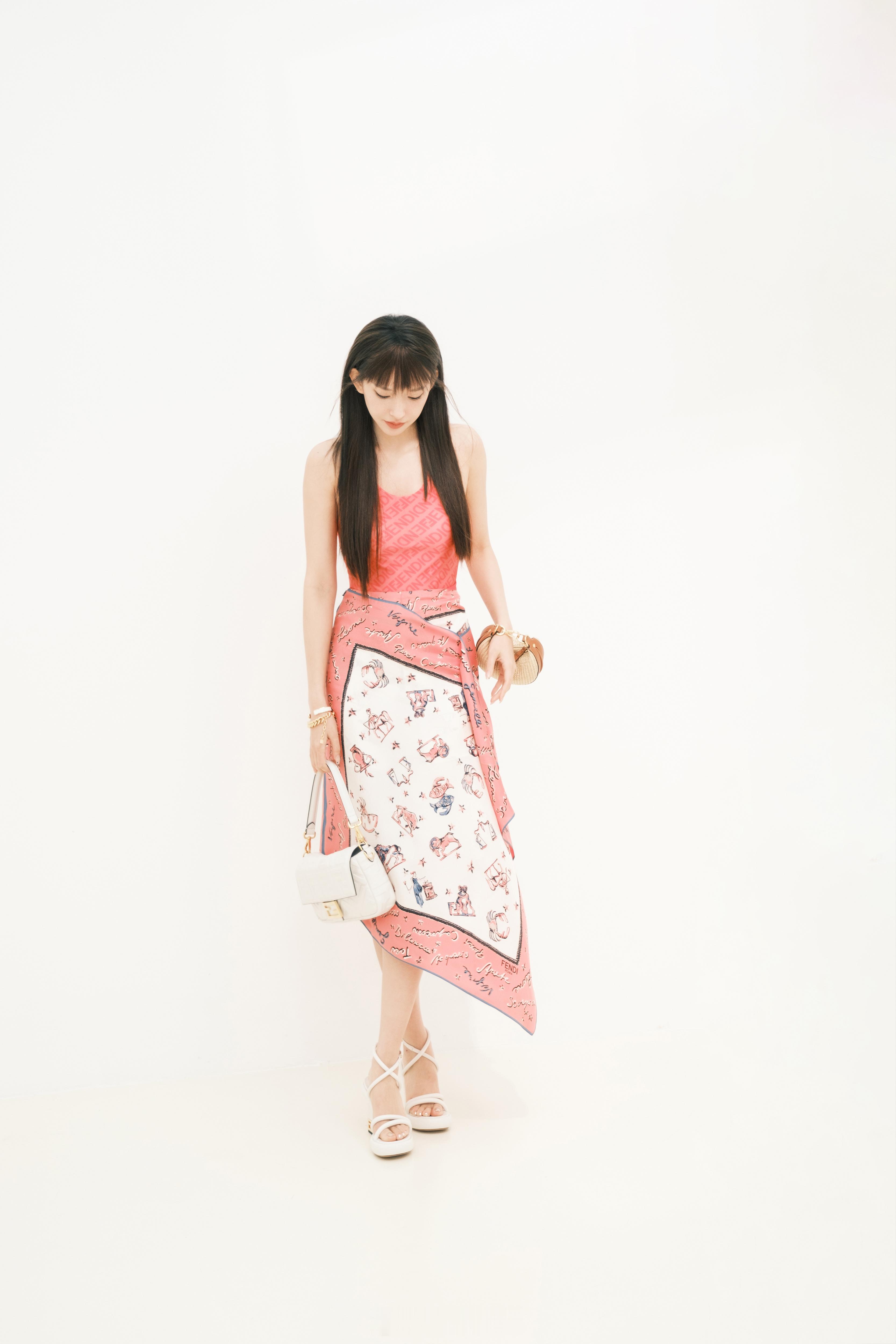 但凡张天爱身上有一点赘肉都穿不了这个衣服