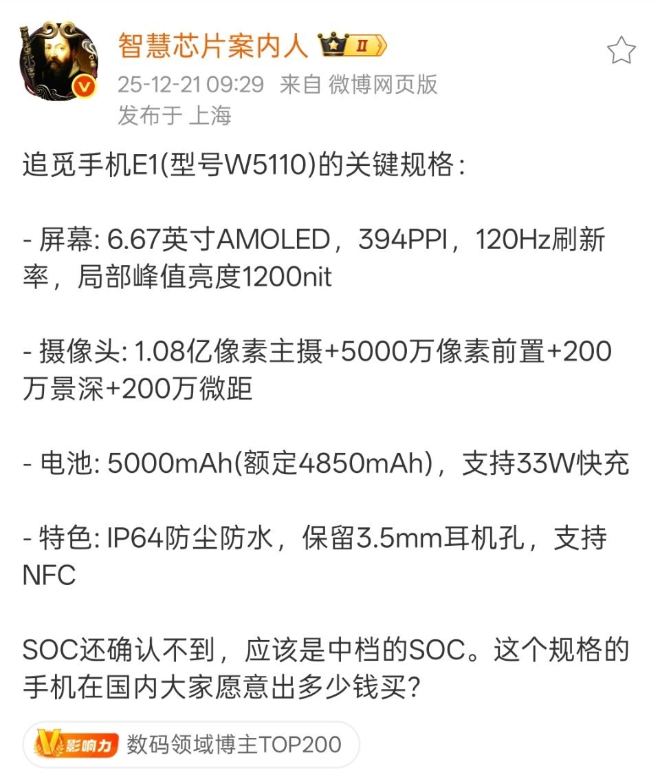 追觅手机曝光出来的这配置可以说是极其罕见了,甚至还保留了3.5mm耳机孔