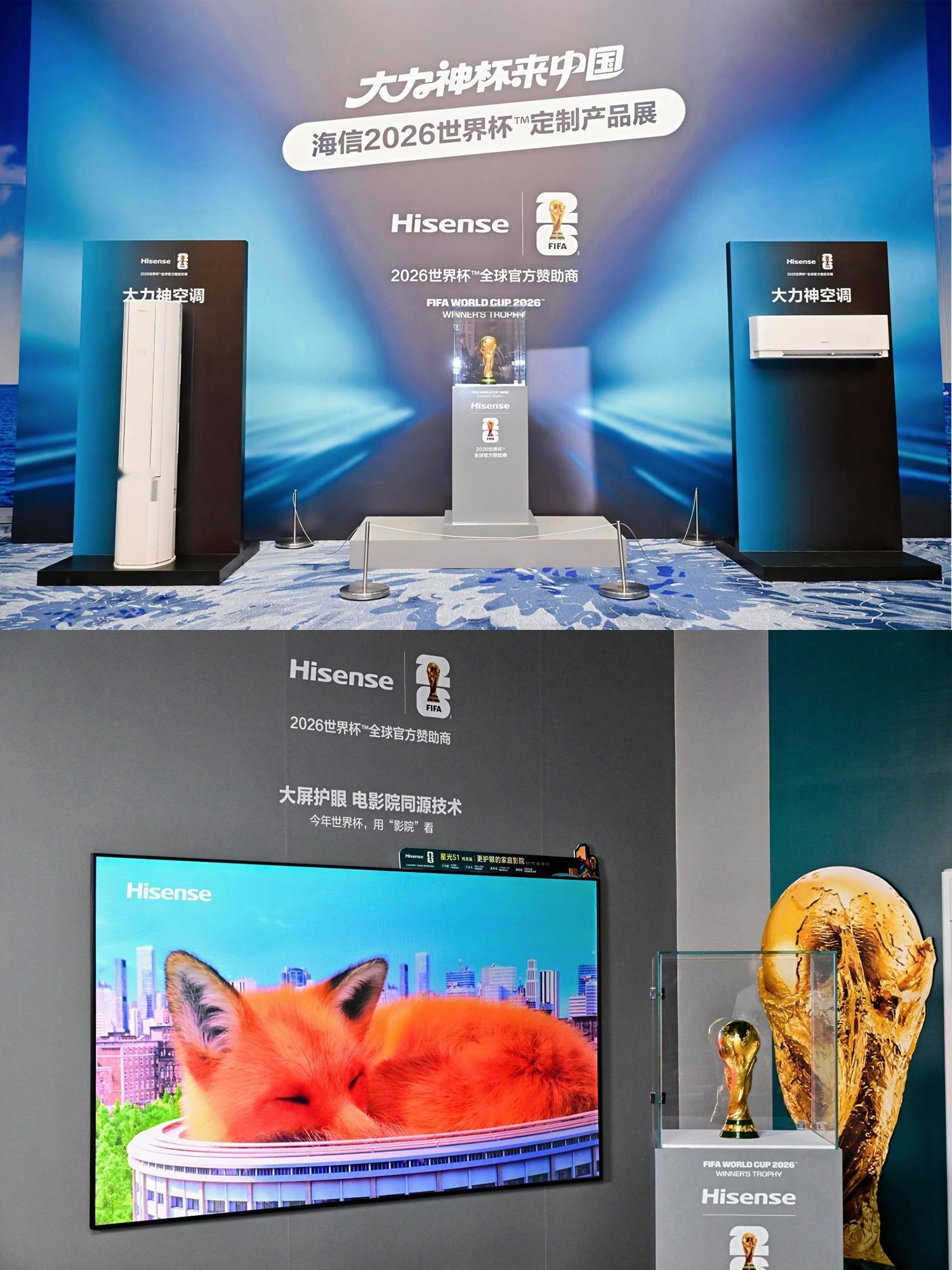 海信世界杯定制产品亮相 国内的足球迷们有福啦!作为2026美加墨世界杯的全球官方赞助商,海信送来了超级福利,把大力神杯带到了青岛免费展出这次活动的主角不仅有世界杯的冠军奖杯,海信为2026年世界杯定制的全阵容产品也一并震撼亮相,其中就包括了海信RGB-Mini LED电视、海信真空冰箱和海信大力神空调等等,世界杯看球模式仿佛已经提前开始了或许明年夏天你无法亲临世界杯现场,但海信可以帮你打造世界杯看球的顶格体验,从比赛的画质音效到吹空调喝冷饮的畅爽体验,一年又一年的看球好搭子,还得是海信
