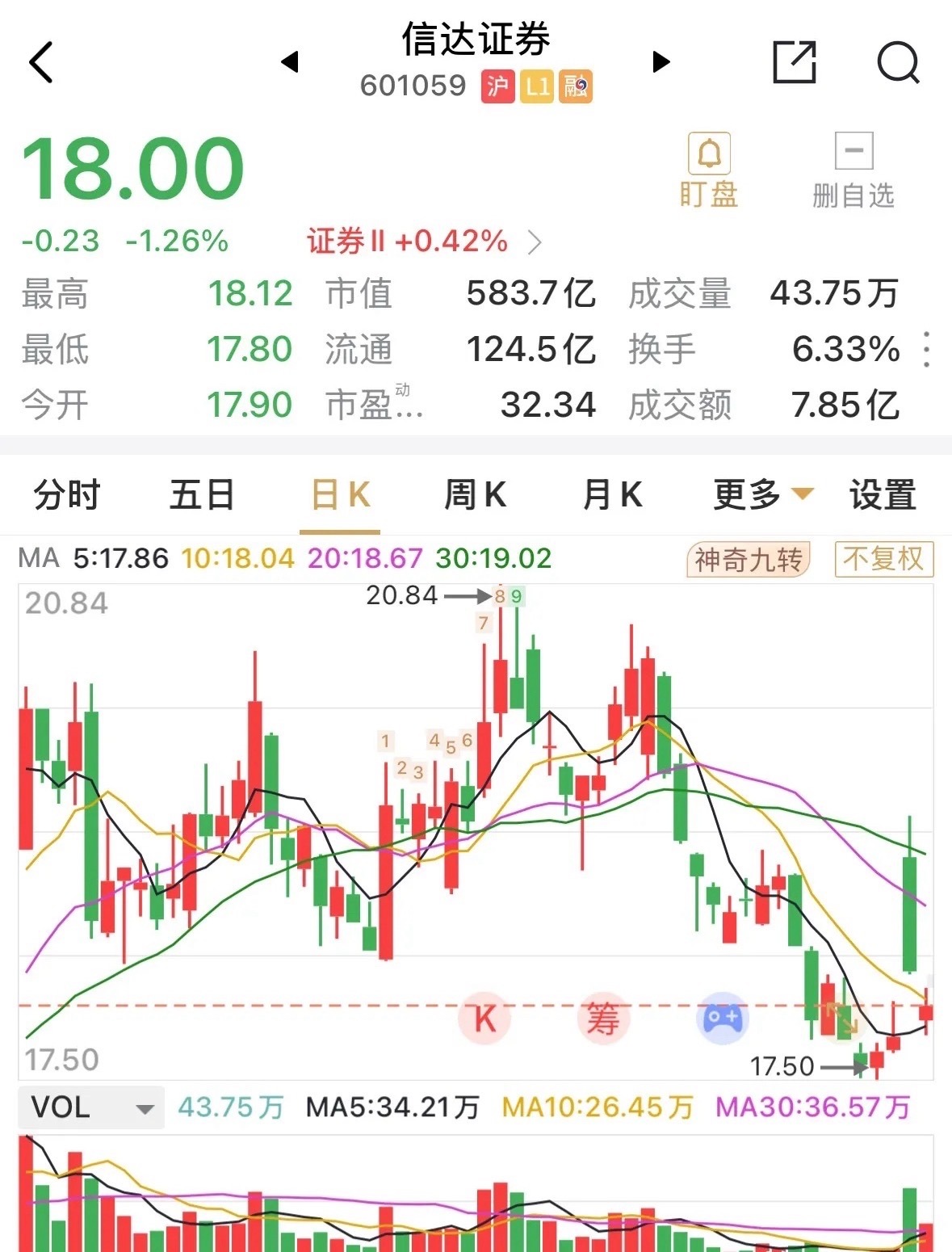 信达证券复牌后的走势复了寂寞。11月19日收盘价17.79元,复牌周五12月19日收18.0元,跌1.26%。盘中最低17.8元,恰好仅比1月前高一分钱。信达证券按0.5188换股中金公司,中金公司的收盘价35.92元,约价值18.63元,折价仅3%左右。未来信达证券的走势或极度依赖中金公司。但中金公司的各项指标在大中型券商中排名并不突出。20左右的动态市盈率,30倍静态市盈率,市净1.78倍也明显高于龙于中信证券1.52倍,更别提仅13.77倍估值的中信证券。而且券商板块2025年整体走弱,明显弱于指数,所以资金热情不足,也是理所当然!原本指望中金公司吸并能推动劵商的热情,没想到反而是在伤口又撒了一把盐。