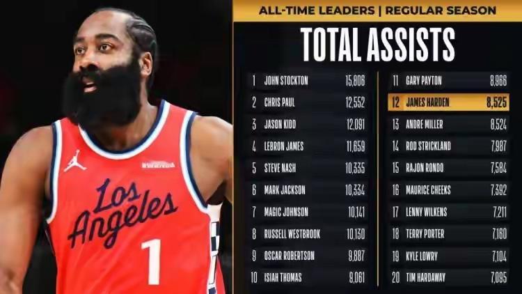 哈登再创辉煌!生涯助攻数超越安德烈·米勒,历史排名再攀升!
