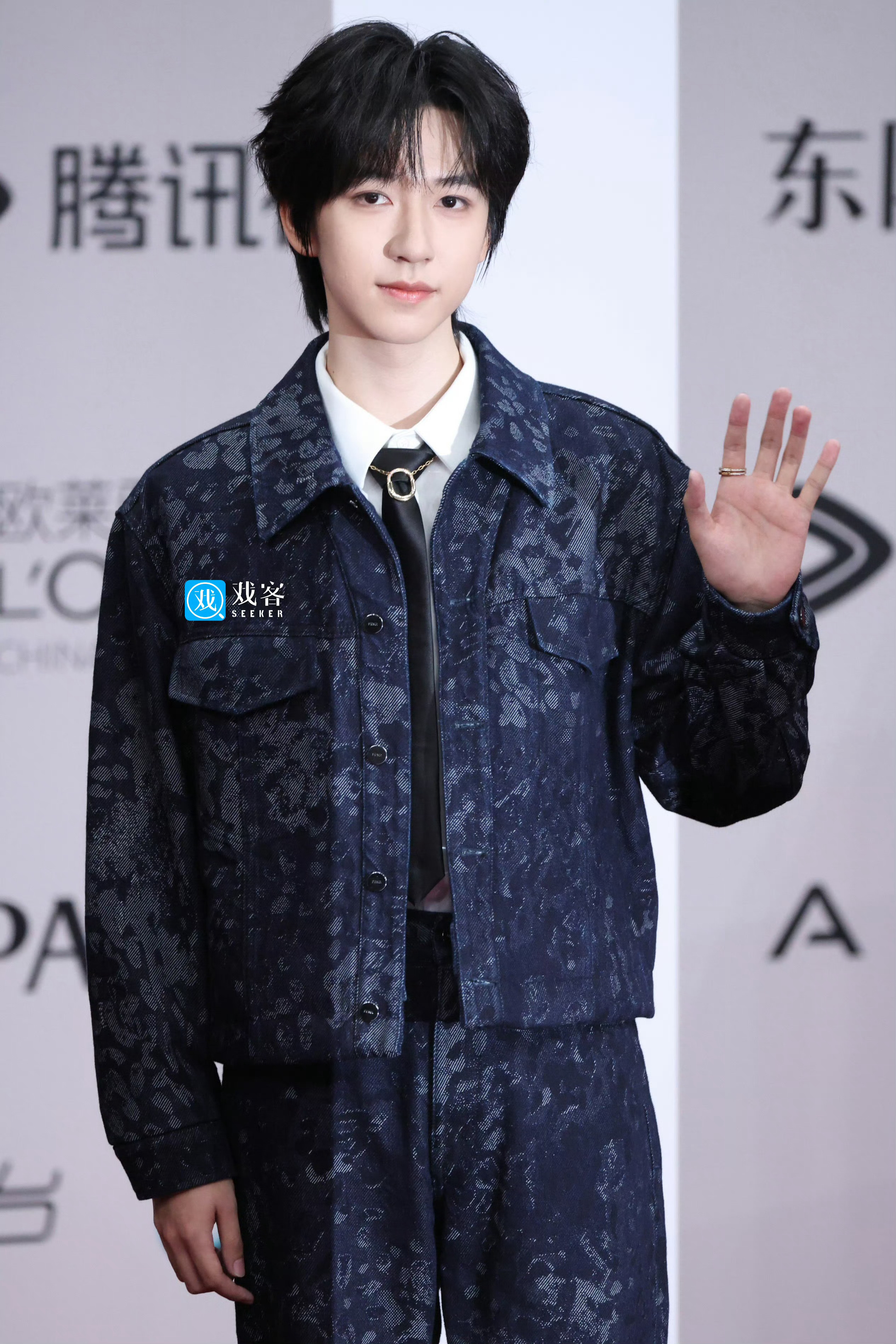 贺峻霖 × 腾讯视频星光大赏 今日份主持人小贺,身穿 FENDI 2026 早春系列蓝色提花牛仔套装搭配 Tiffany & Co. 蒂芙尼珠宝亮相星光大赏红毯,俊逸十足的内场主持人帅气登场~📸星光大赏红毯