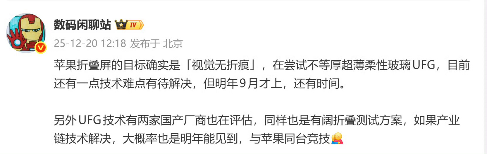 曝折叠iPhone尝试UFG玻璃如果果子尝试成功了,估计国产手机也会在半年内跟进上,综合来看利好消费者。