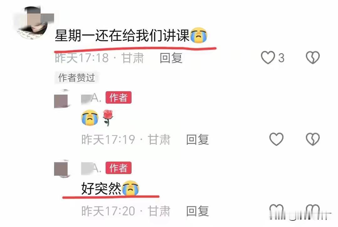 年仅35岁的李祖栋老师,因生学生的气突发心梗不幸离世,令人扼腕叹惜! 根据网友披露,甘肃靖远县优迪英才学校生物老师也是班主任的李祖栋,热爱学生,心底善良,和学生是亦师亦友的好老师。所以,学生亲切地称呼35岁的李老师为“果冻”、“栋哥”和“大壮”等。李老师执着于教育事业,为学生操碎了心,直到生命的最后一刻。由于李老师教学成绩突出,还被评为县级“园丁奖”。 万万没有料到的是,就是这么一位十分优秀的老师,却因生学生的气,突发脑梗,医治无效,抛下年轻的同行妻子和两个年幼的孩子,不幸去世,令人十分惋惜。 李老师不幸去世后,他的学生十分震惊,纷纷发文(言)怀念和哀悼自己的恩师,悲痛和不舍之情溢于言表。 目前尚不知道李老师因为什么生学生的气,而且生了这么大气。我们闻讯后,除了万分悲痛之外,把网友对这件事的看法放在这里,供大家尤其是教师朋友们探讨。 一部分网友认为,李老师太可惜了,这么好的老师年纪轻轻就撒手人寰,抛下了年轻的妻子和两个年幼的孩子,这个家往后谁来撑啊,怎么就没有炼就一个良好的心理素质? 还有一部分网友认为,李老师太执着于自己热爱的教育事业了,但是应该懂得泥永远是泥,它是永远扶不上墙的;金子永远是金子,哪怕蒙尘,当老师的拭去尘埃,它就会闪闪发光。 您怎么看呢?