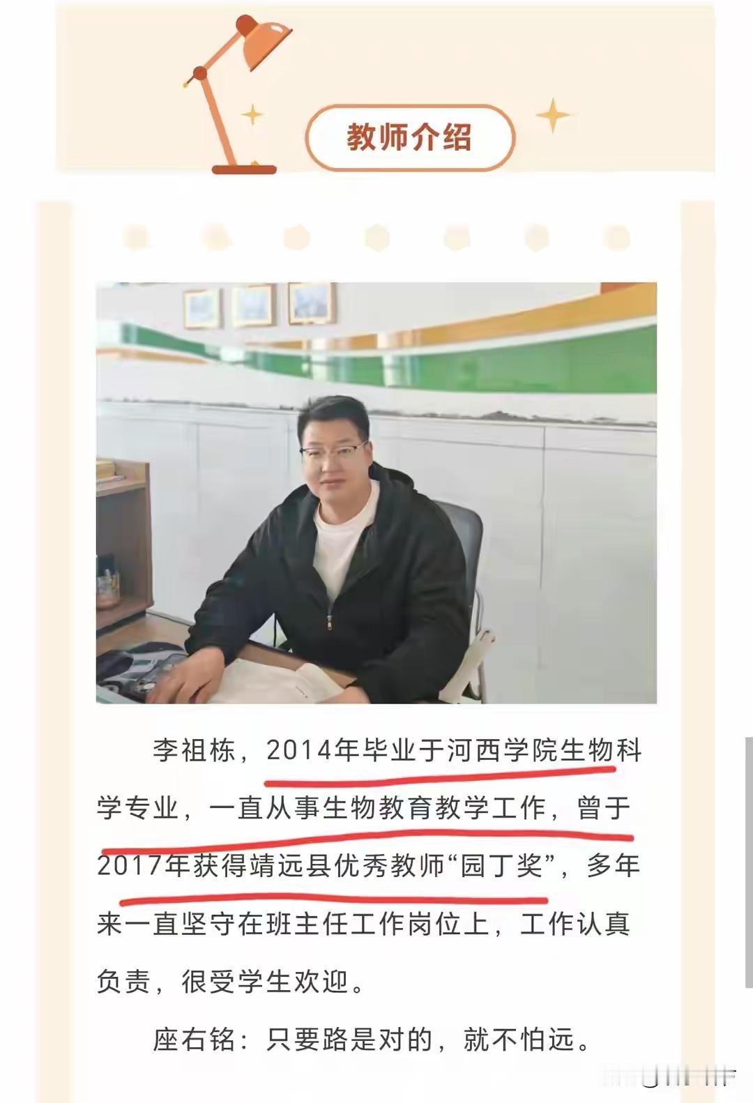 年仅35岁的李祖栋老师,因生学生的气突发心梗不幸离世,令人扼腕叹惜! 根据网友披