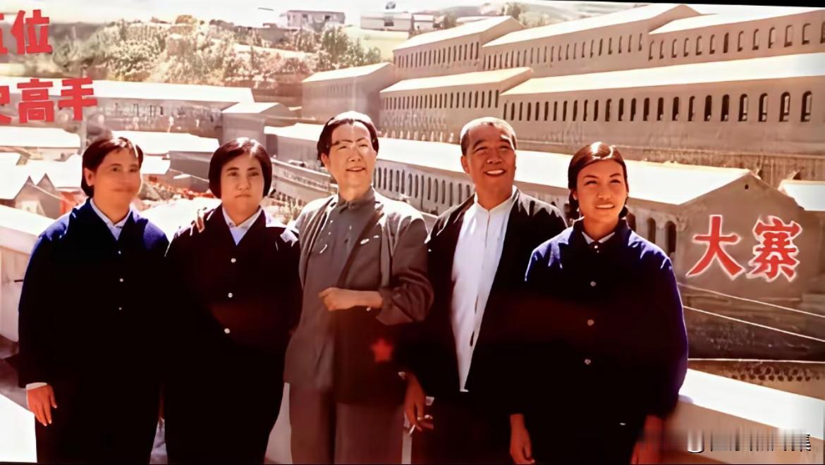 1970年代,大寨书记陈永贵、“铁姑娘”郭凤莲、吴桂贤等在大寨村的珍贵合影。这张合影拍摄于“农业学大寨”运动的高峰期。当时的大寨村已经成为全国农业战线的光辉榜样,来自全国各地的参观学习队伍络绎不绝。1975年,陈永贵当选为国务院副总理,成为新中国第一位农民副总理。