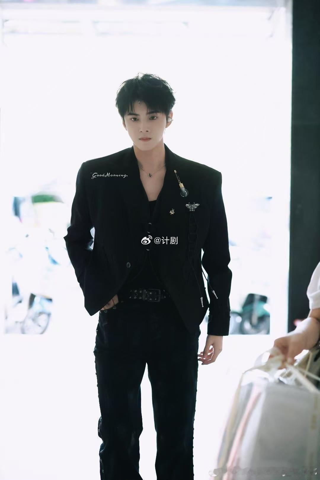 被古子成下颌线划伤了 这种下颌线真的是老天爷赏饭吃,骨相太优越,随便一个侧脸镜头都能截出来当壁纸。古子成把黑西装穿出了高级定制的感觉,靠的不只是衣服,更是这张建模脸和绝美的线条感。