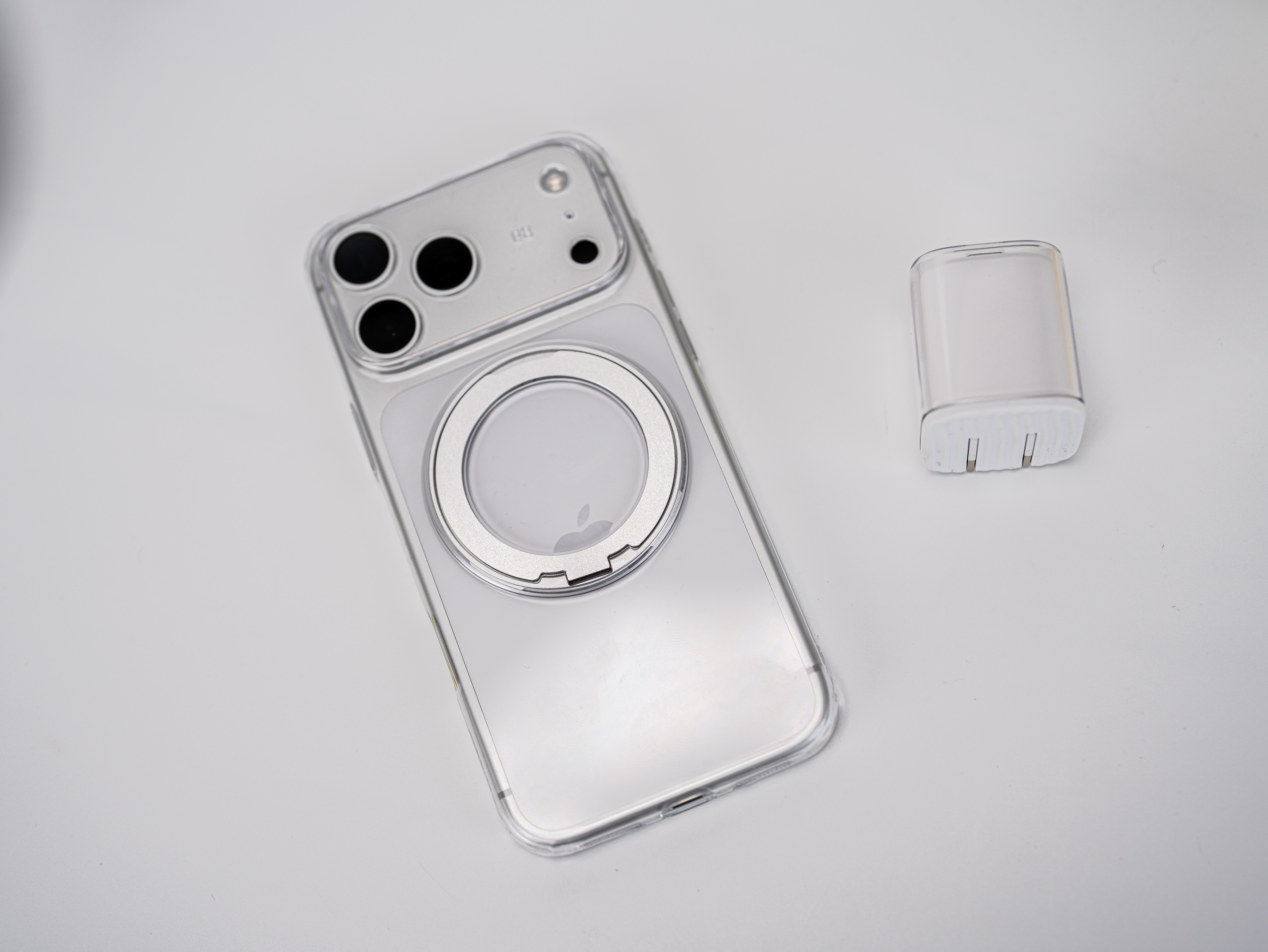 我的苹果手机搭子 入手iPhone17 pm大半个月,配件选择困难症差点把我逼疯,直到遇上倍思全家桶,直接一键解锁“躺平式”配齐~先夸夸这个无边3D热弯零感膜,手残党本人含泪认证:无尘仓一扣秒贴稳,无黑边+抗反射,裸屏手感丝滑到离谱,还不沾指纹,跟手机壳组队也绝不“内讧”顶膜零感支点壳R1s薄到像空气,透明款完美秀出新机颜值,360度旋转支架追剧稳得能焊在桌上,镜头精孔全包,安全感直接拉满到溢出~压轴的同芯充Pro 45W充电器,简直是我的续命本命!苹果同厂PI芯片护电池,半小时回血80%,折叠插脚揣包里隐身,充电全程凉飕飕不发烫~三套配齐直接封神~如果有跟我一样换了新机就犯配件选择困难症的姐妹,别瞎琢磨了,跟我抄作业准没错!