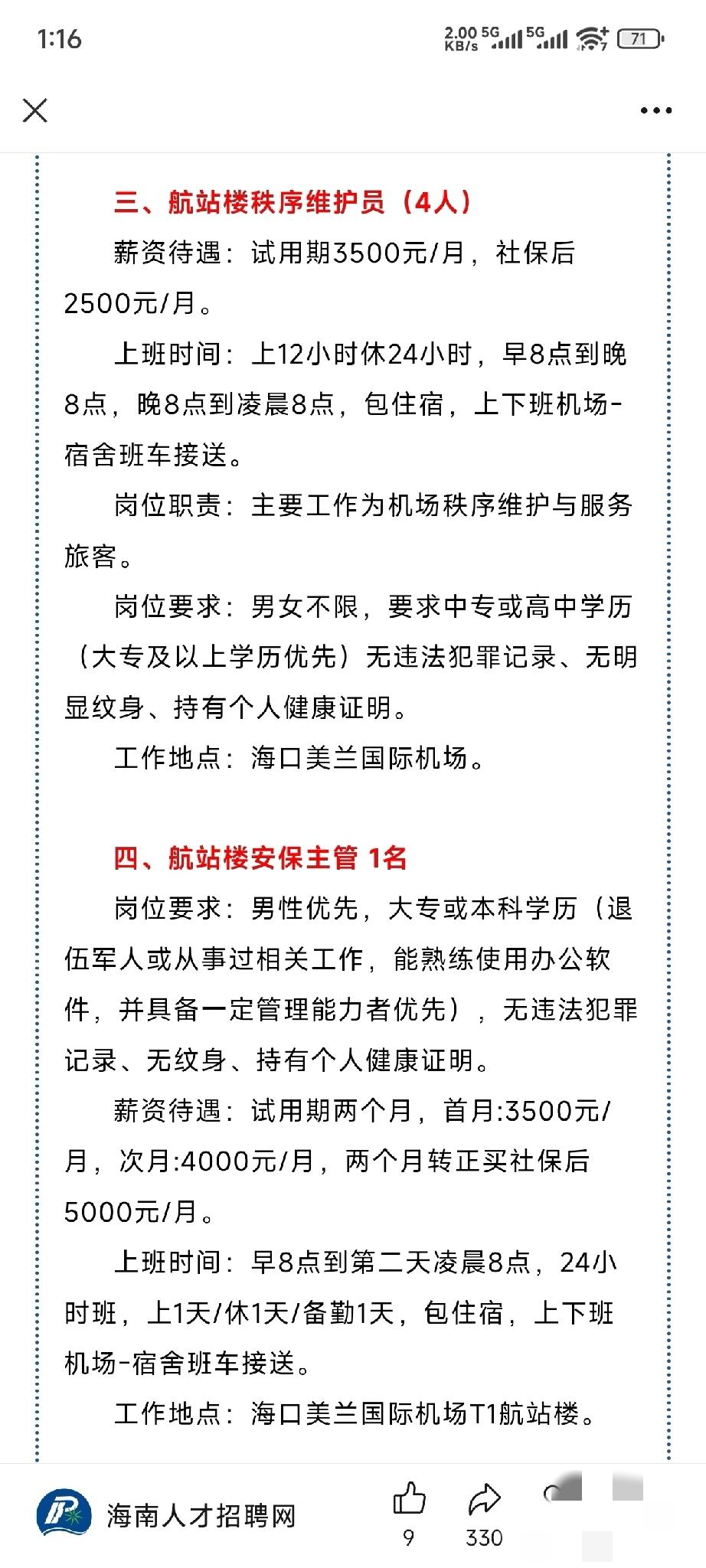 海南招聘岗位 。 看看这工资,看看这物价。勤劳不能致富,也就只够饿不死。海南也是太难了。