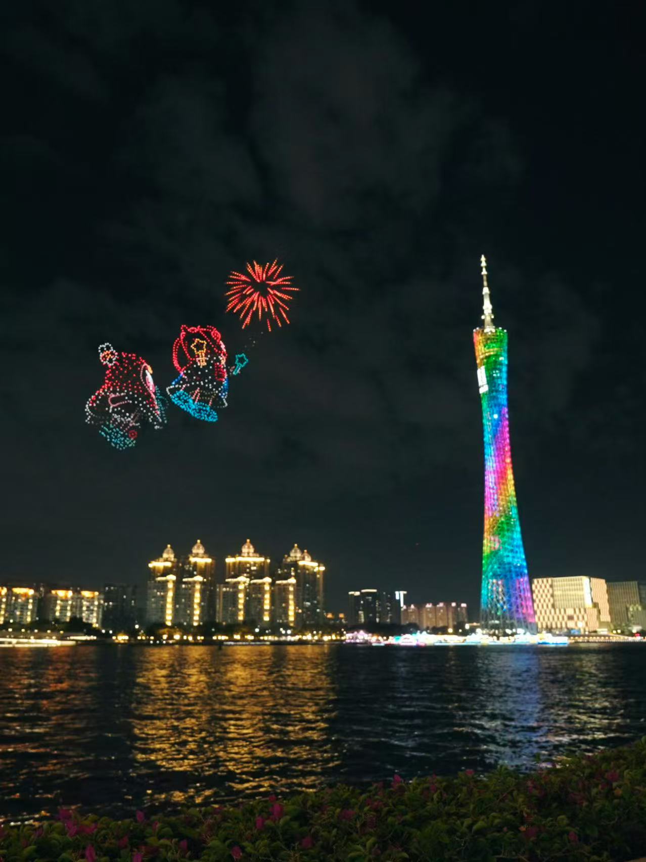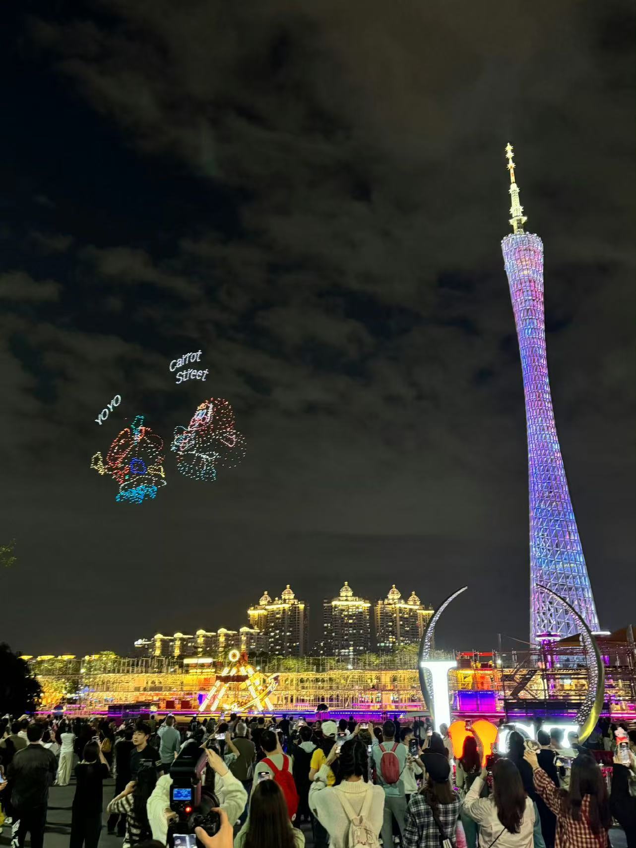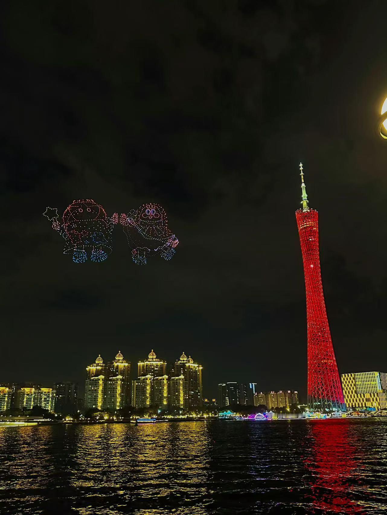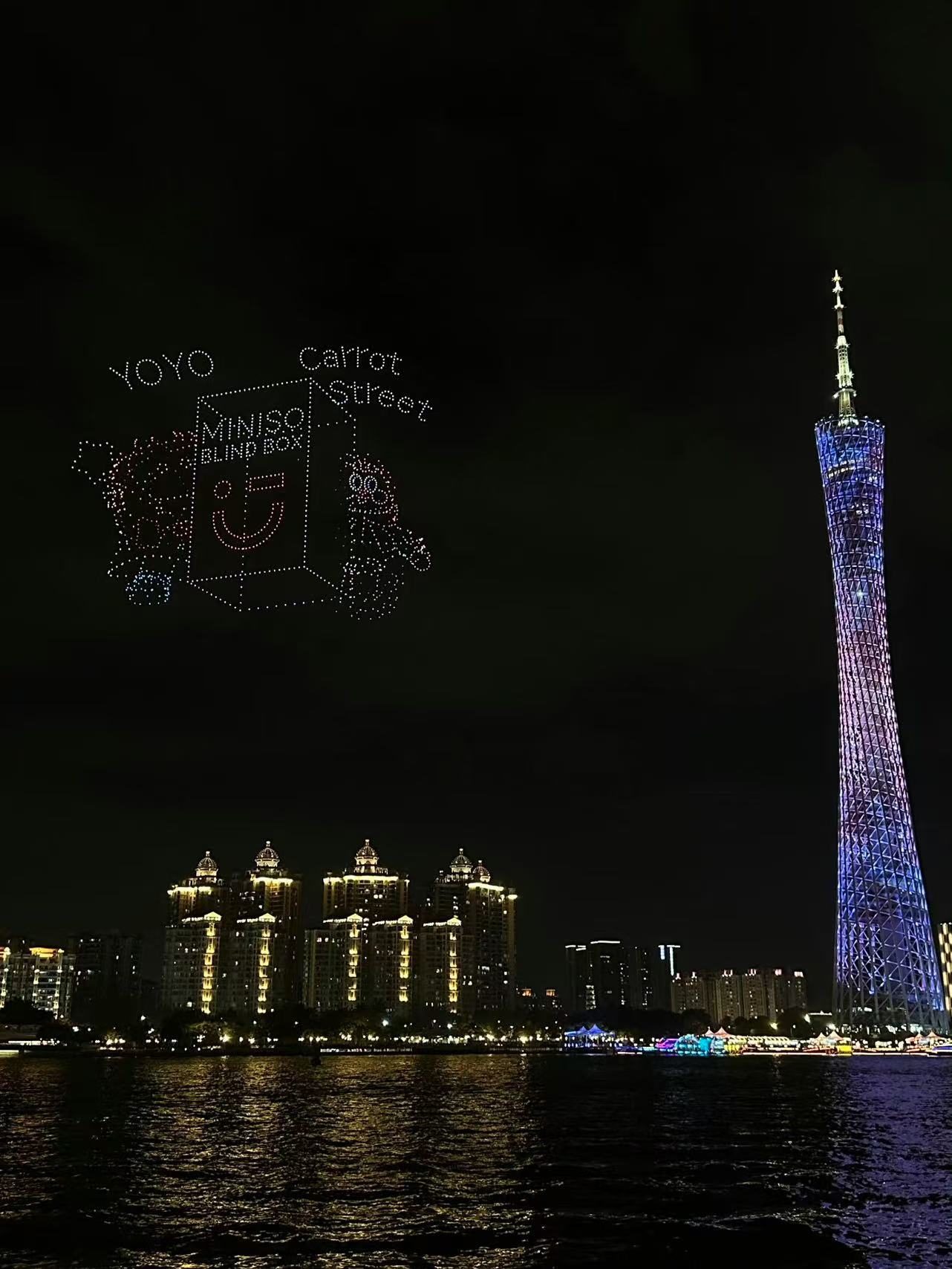 广州塔夜空惊现巨型盲盒谁懂啊!千架无人机在广州塔下拼出巨型盲盒,YOYO和萝卜街还在珠江边玩闪现躲猫猫!15分钟光影盛宴直接燃爆全城,名创盲盒节这波操作太会了吧!
