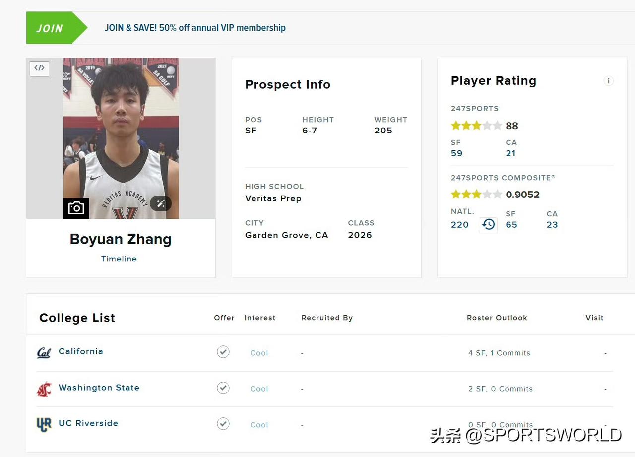 张博源获评美国3星高中生,综合评分88分,排名小前锋第59位,全美高中生排名第220位。这应该是张博源打美高联赛后第一次上星,距离90分仅差2分,过了90分就是4星了,4星意味着已经从众多球员中脱颖而出,最有可能在大学生涯中取得优异成绩,而此前郇斯楠评分就达到了90分,获评4星。 期待张博源更进一步,比赛才刚开始,后面升分机会很大。