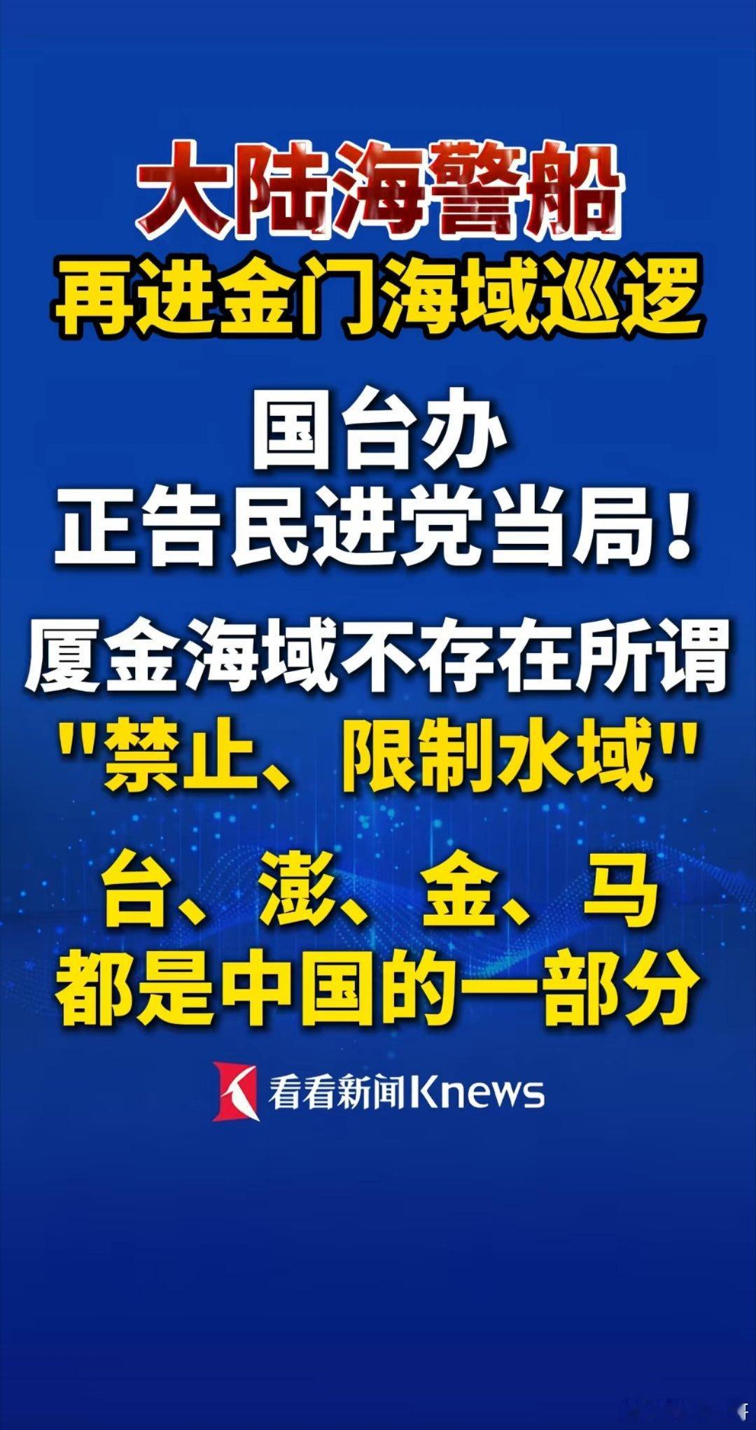 国台办正告民进党当局 :厦金海域不存在所谓“禁止、限制水域”大陆海警船再入金门海域巡逻!干的漂亮!口袋越收越紧!台湾统一势不可挡!