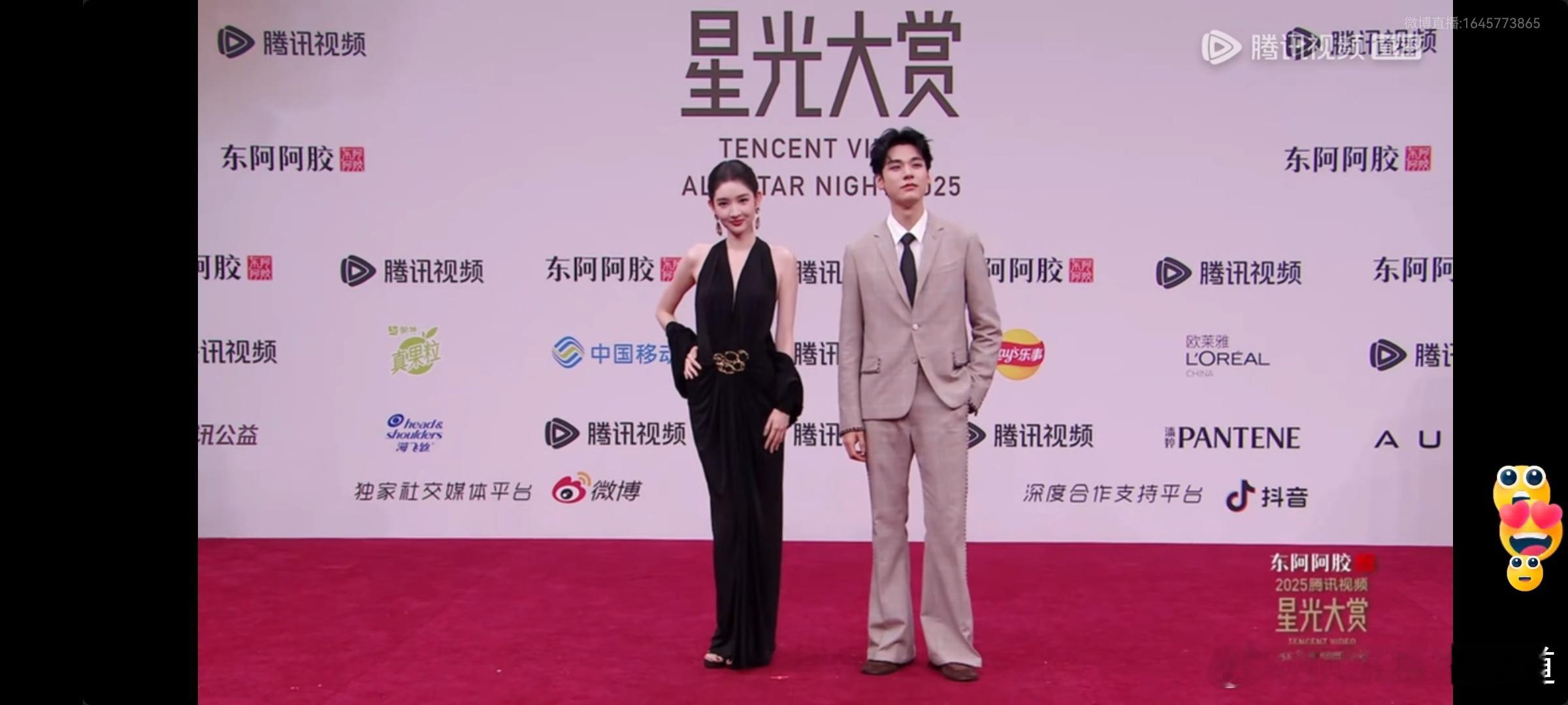 王阳和秦岚这一身黑色西服穿搭,中规中矩,再配上星光大赏的简陋的红毯背景,看上去特
