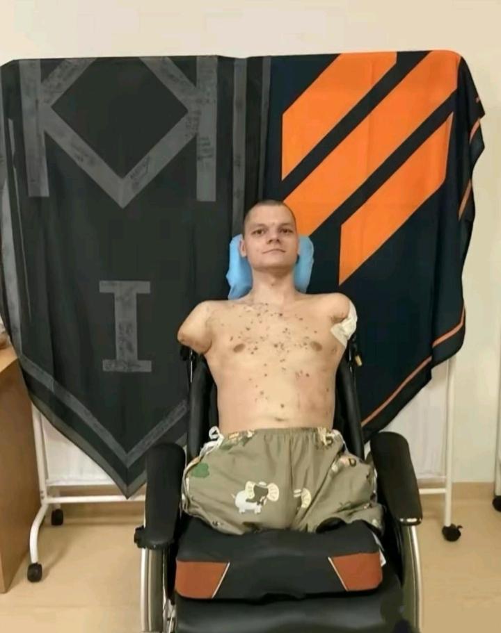 这是一名在战争中失去了四肢的乌克兰士兵。尽管他的脸上显露出乐观的神情,但掩饰不住战争的惨烈残酷! 我们难以想象,他的后半生该怎样生活?