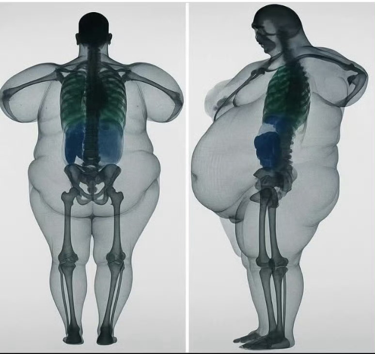 瘦人和胖人的骨骼一样,但脂肪量可不一样。还不快点减肥?