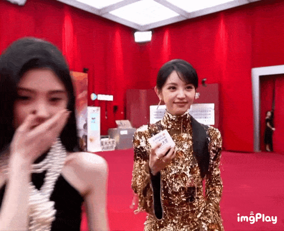 有网友说鞠婧祎一直捂着脸的原因是,笑起来填充感就出来了星光大赏红毯鞠婧祎内场生频