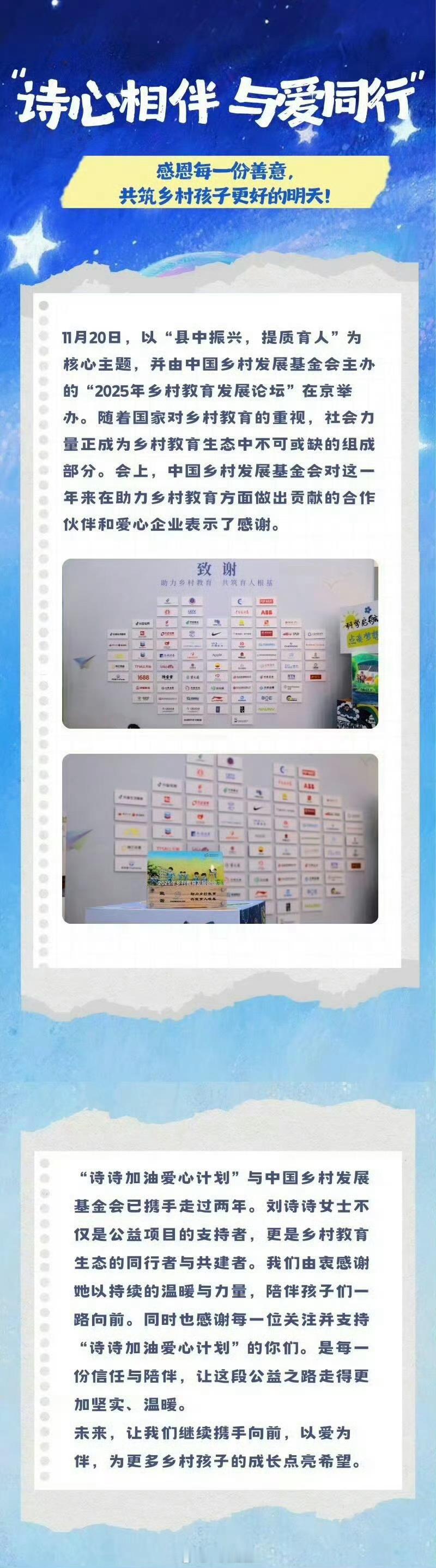 刘诗诗一直都在默默的公益,做的永远比说的多又支持了8所乡村学校,惠及2196名学生,一姐人美心善低调谦虚充满正能量,是榜样