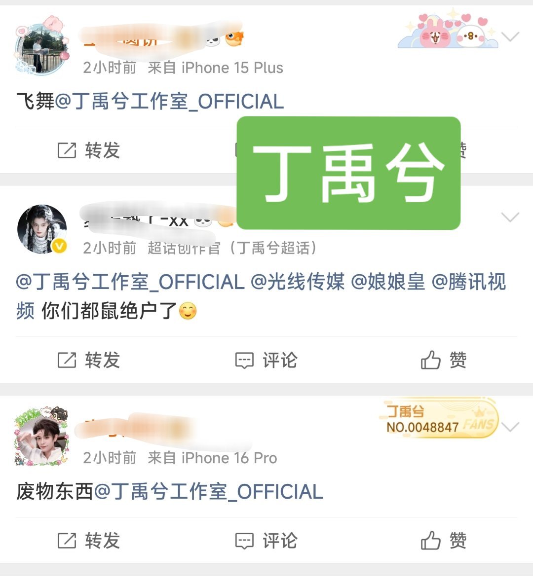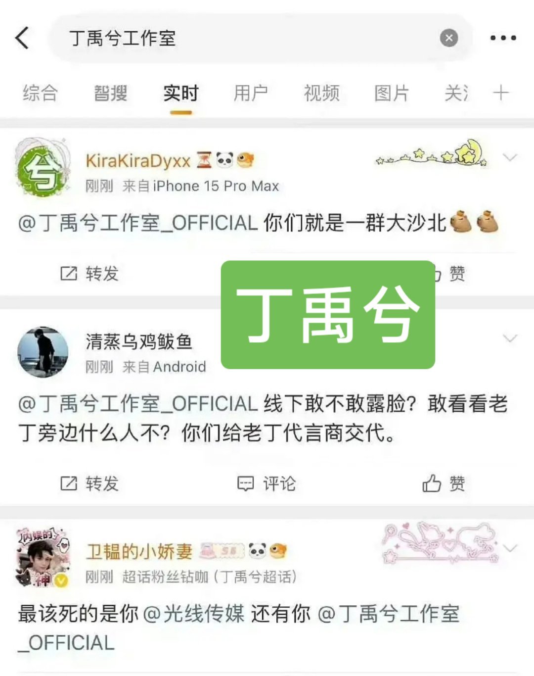 丁禹兮,龚俊,檀健次的工作室被粉丝麻辣了,貌似是没有搞到好座位。(刚看到丁禹兮生