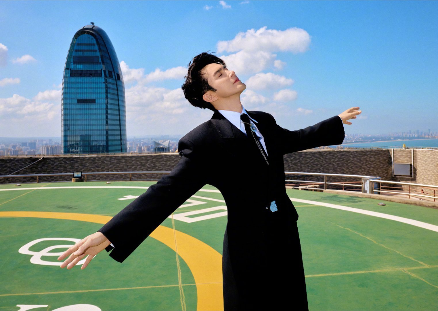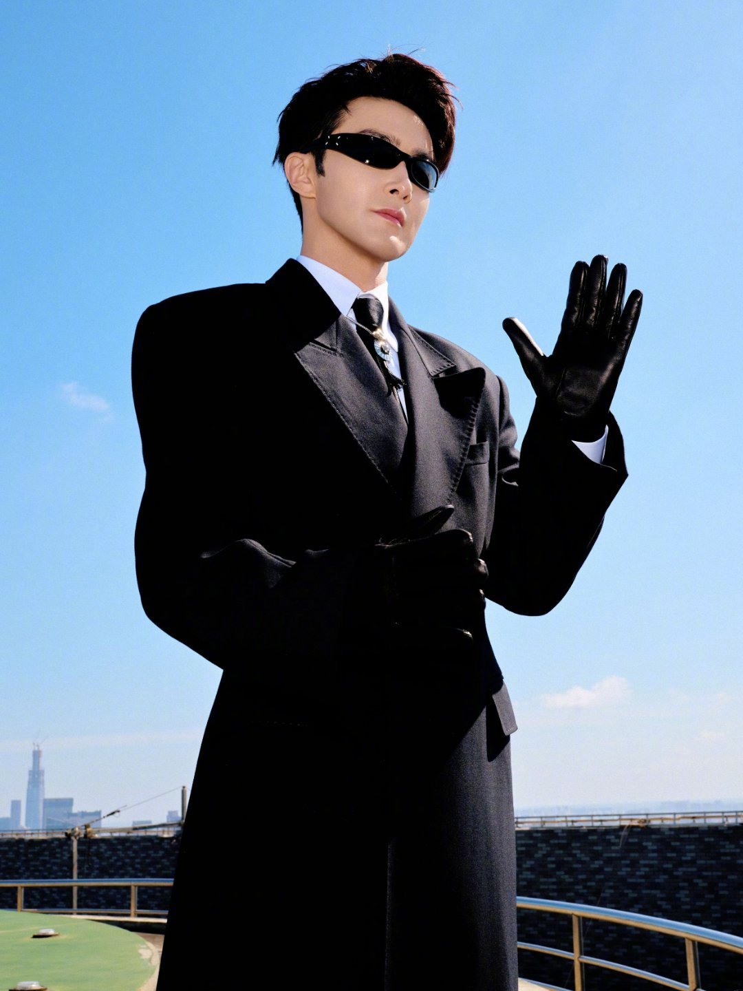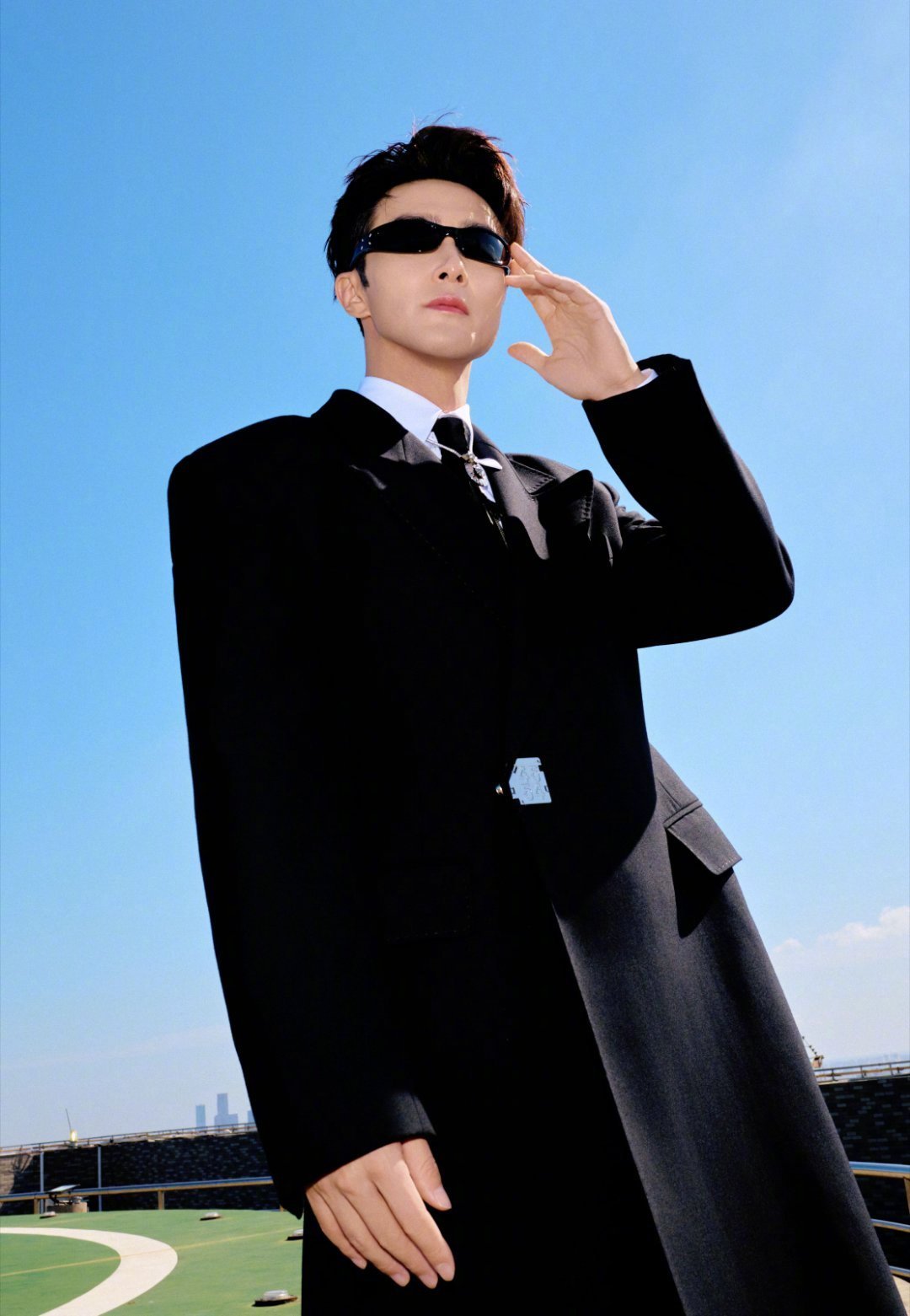 高伟光在停机坪上演黑客帝国高伟光这组直接把《黑客帝国》的氛围感搬到天台了!! 一身黑色长款西装利落又冷峻,帅的人眼前一亮啊