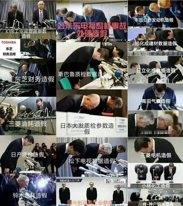 在日本,造假是一件比坐牢还严重的事情,造假被发现基本上意味着个人发展到此为止了。 因为造假,公司倒闭企业主自杀甚至没人同情,大家只是认为你用自杀洗清了错误而已。 所以,在日本造假,最大概率会出现的后果就是…… 鞠躬🙃 日本防卫省发现川崎重工从2002年开始在供给海自潜水艇的柴油发动机数据上造假。 防卫省一怒之下,暂停川崎 2.5 个月中标资格👻日本历史谎言 第三方造假