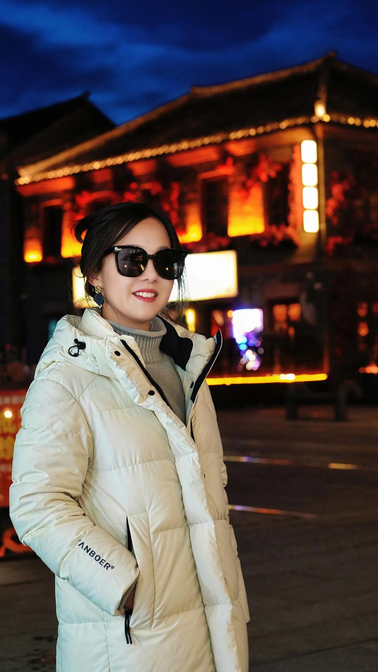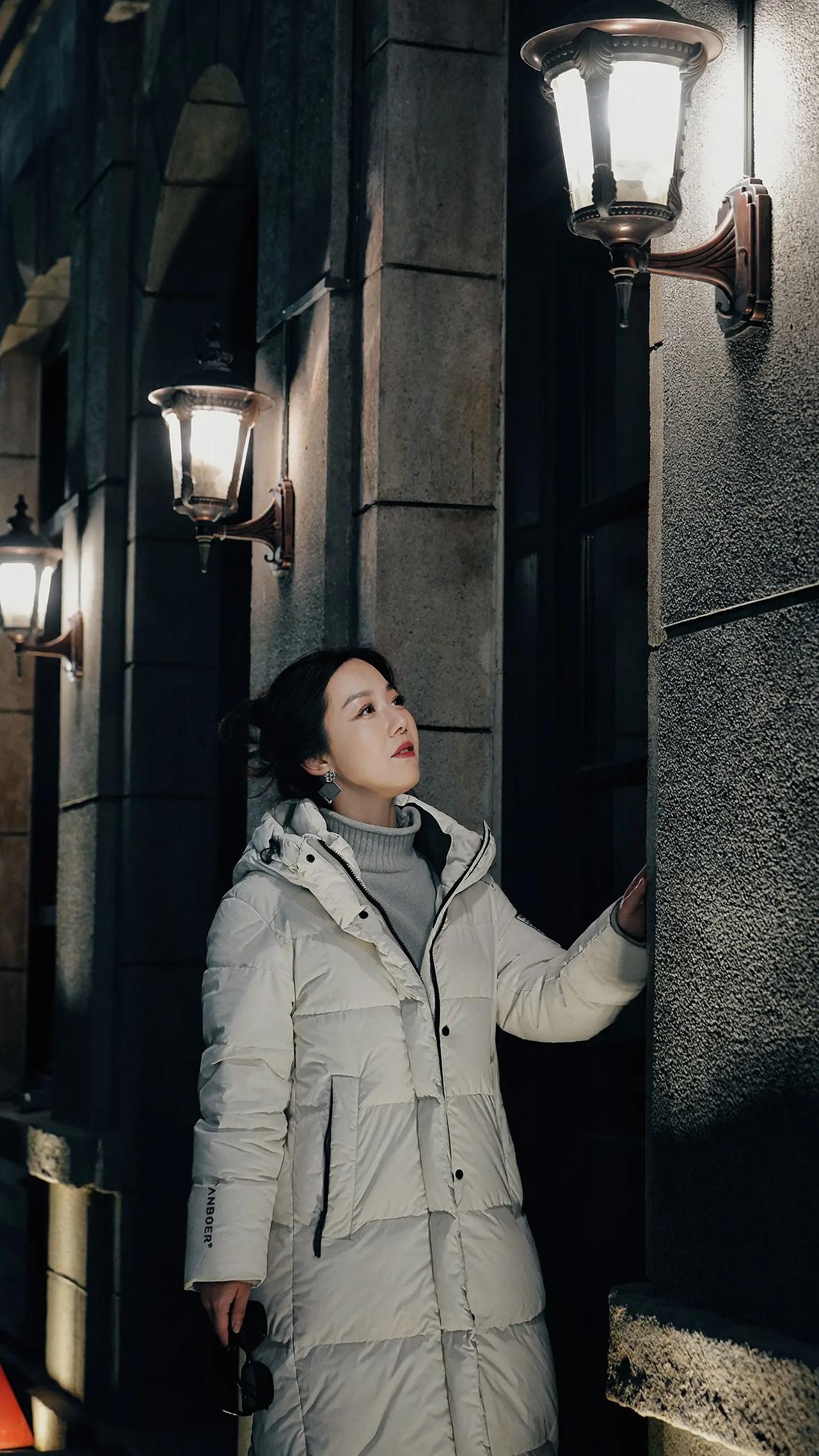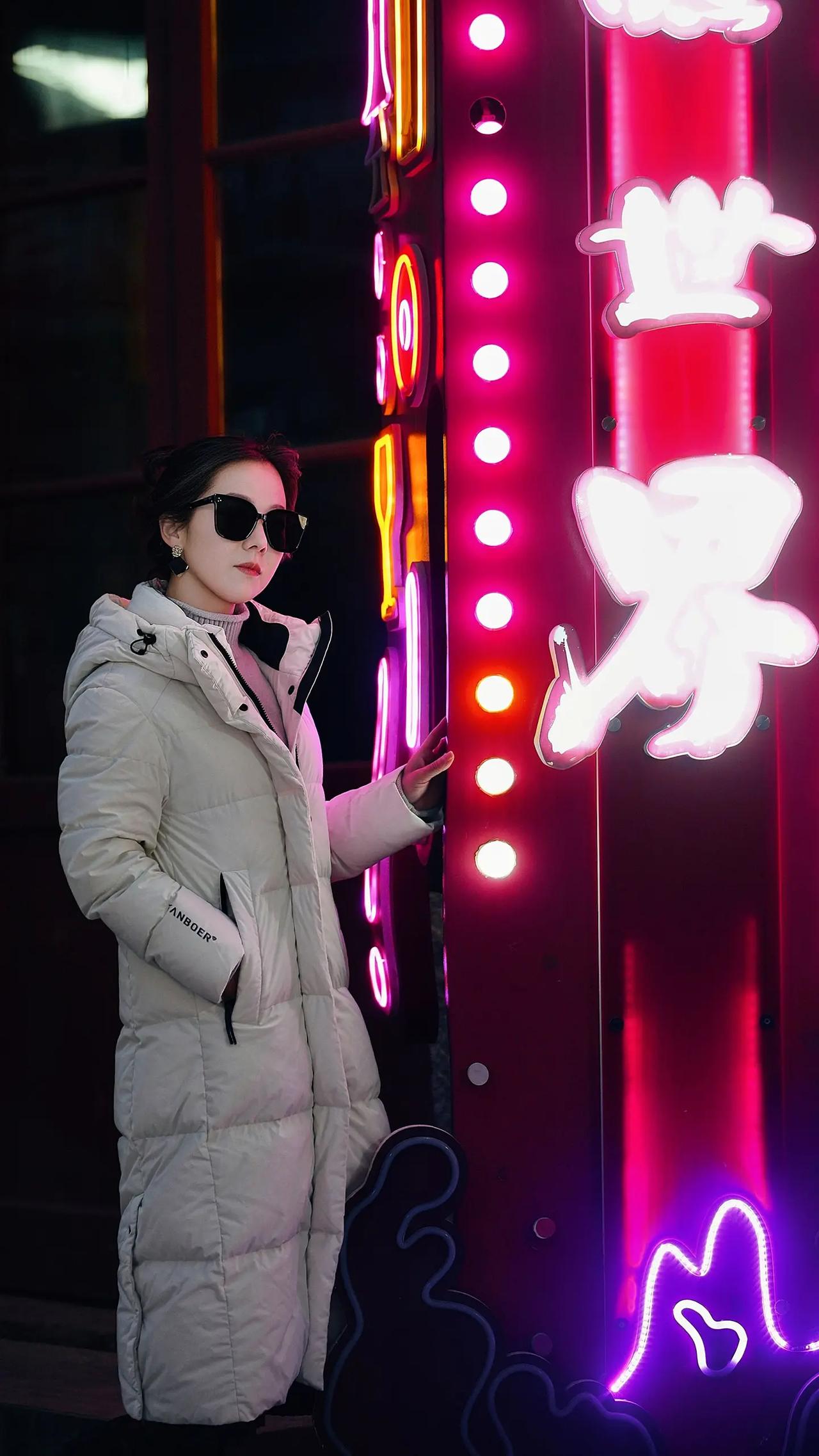 朝阳街烟台山✨夜景出片天花板!霓虹灯下的氛围感杀疯了💥🧥长款羽绒服配墨
