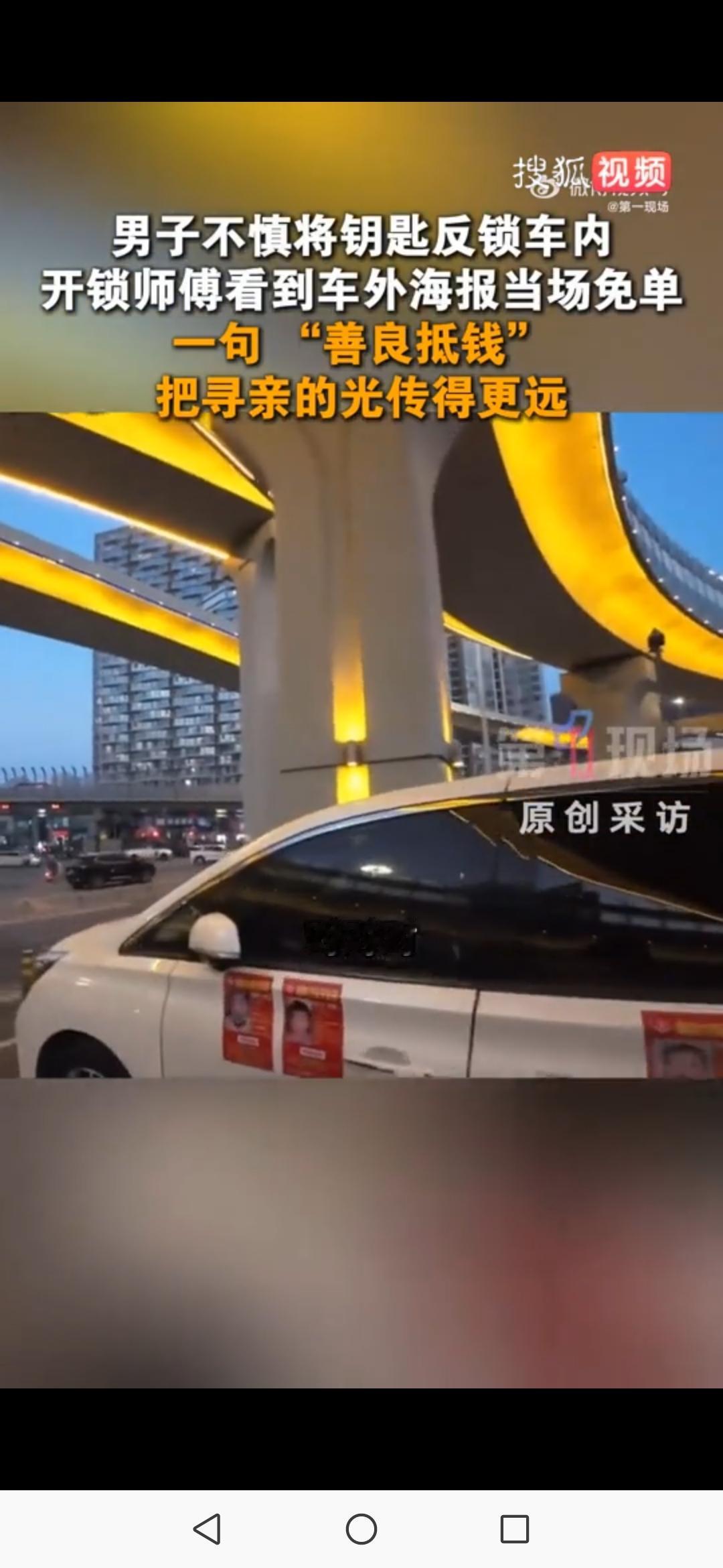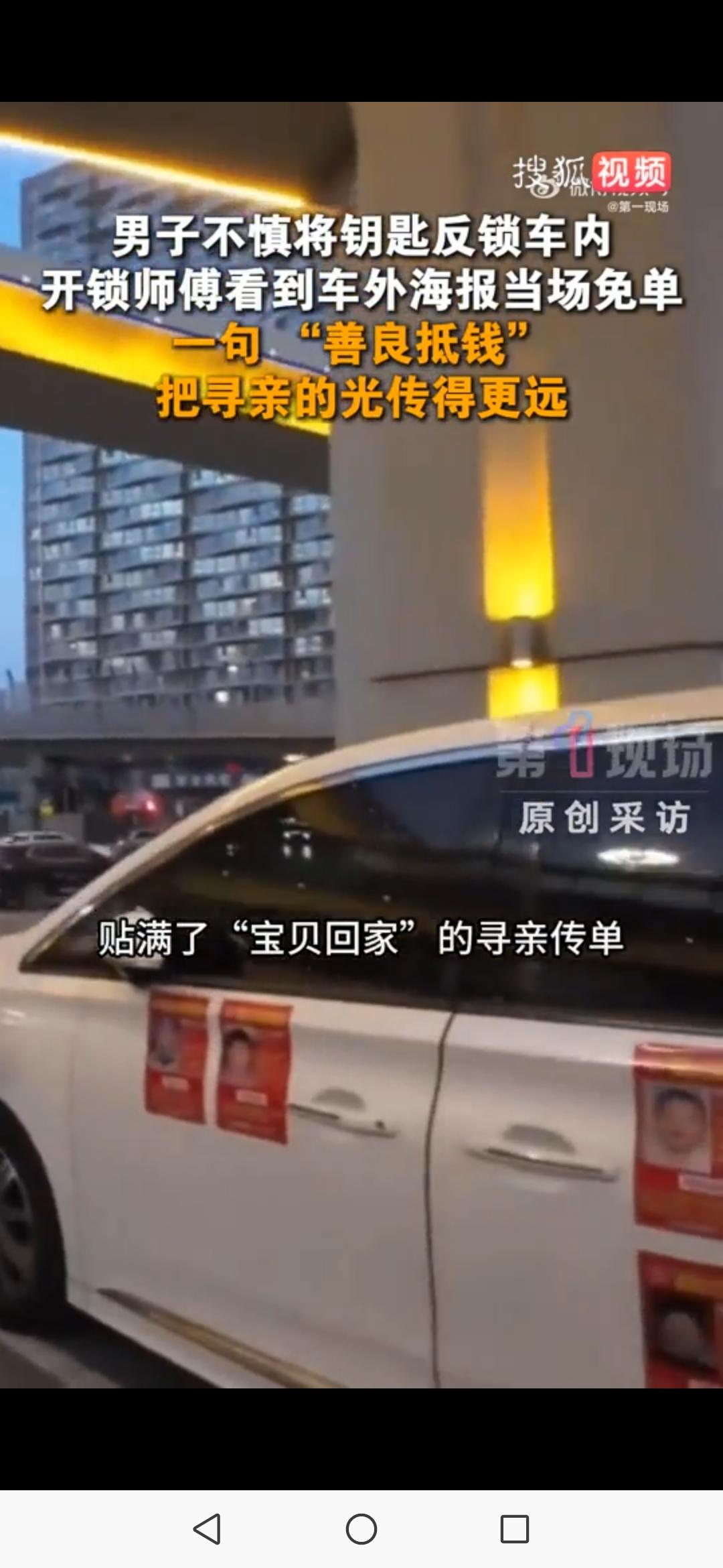 男子钥匙反锁车内,开锁师傅看到车窗寻亲贴当场免单:你的善良,自带铠甲 “师傅,麻烦您帮我开个锁,钥匙被反锁车里了!”焦急的张先生站在车旁,对着赶来的开锁师傅连声道歉。可师傅刚凑近车门,目光就被车窗上密密麻麻的寻亲贴纸吸引——一张张稚嫩的孩童照片,配着“恳请好心人留意”的字样,瞬间让师傅的动作顿住了。 听完张先生的解释,大家才知道,这些寻亲广告贴了整整三年。张先生并非走失儿童的家属,只是偶然看到寻亲信息,便主动把这些沉甸甸的期盼贴满车身,哪怕车身变丑、年检麻烦,也从未想过撕掉。他说:“多一个人看到,就多一分希望。” 师傅沉默片刻,摆摆手说:“这锁我免费开!你的善良已经付过钱了!”这句话,让张先生瞬间红了眼眶。 这一幕被路人拍下传到网上,戳中了无数网友的泪点。有人说:“这才是双向奔赴的温暖!”有人感慨:“善良从来都不是亏本买卖,总有一天会以意想不到的方式回馈你。”还有人自嘲:“我的车干干净净,却少了最珍贵的‘装饰’。” 是啊,在这个人人忙着赶路的时代,张先生的举动看似“多此一举”,实则是藏在平凡里的英雄主义。他没有惊天动地的壮举,只是用一张贴纸,为素不相识的家庭点亮一盏希望的灯;而开锁师傅的免单,更像一束光,照亮了这份善意的价值。 我们总说世道艰难,可总有这些瞬间告诉我们:善良是会传染的,温暖是能共鸣的。那些你随手播撒的善意,终会在某个不经意的时刻,化作护佑你的铠甲。热点话题