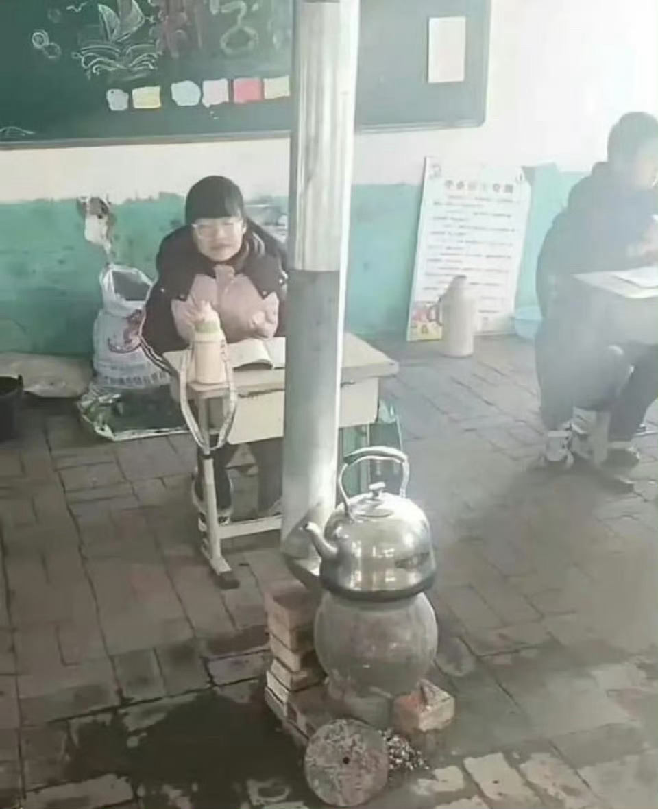 90后,和我上小学的时候一模一样,每天轮流生火,印象最深的是我们拿以前民兵训练用的手榴弹当锤子砸煤