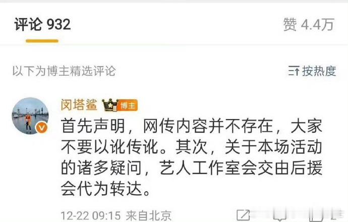 闵塔鲨辟谣闵塔鲨辟谣网传活动谣言 网传的活动谣言,被闵塔鲨亲自下场辟谣,回应的态度果决又直接
