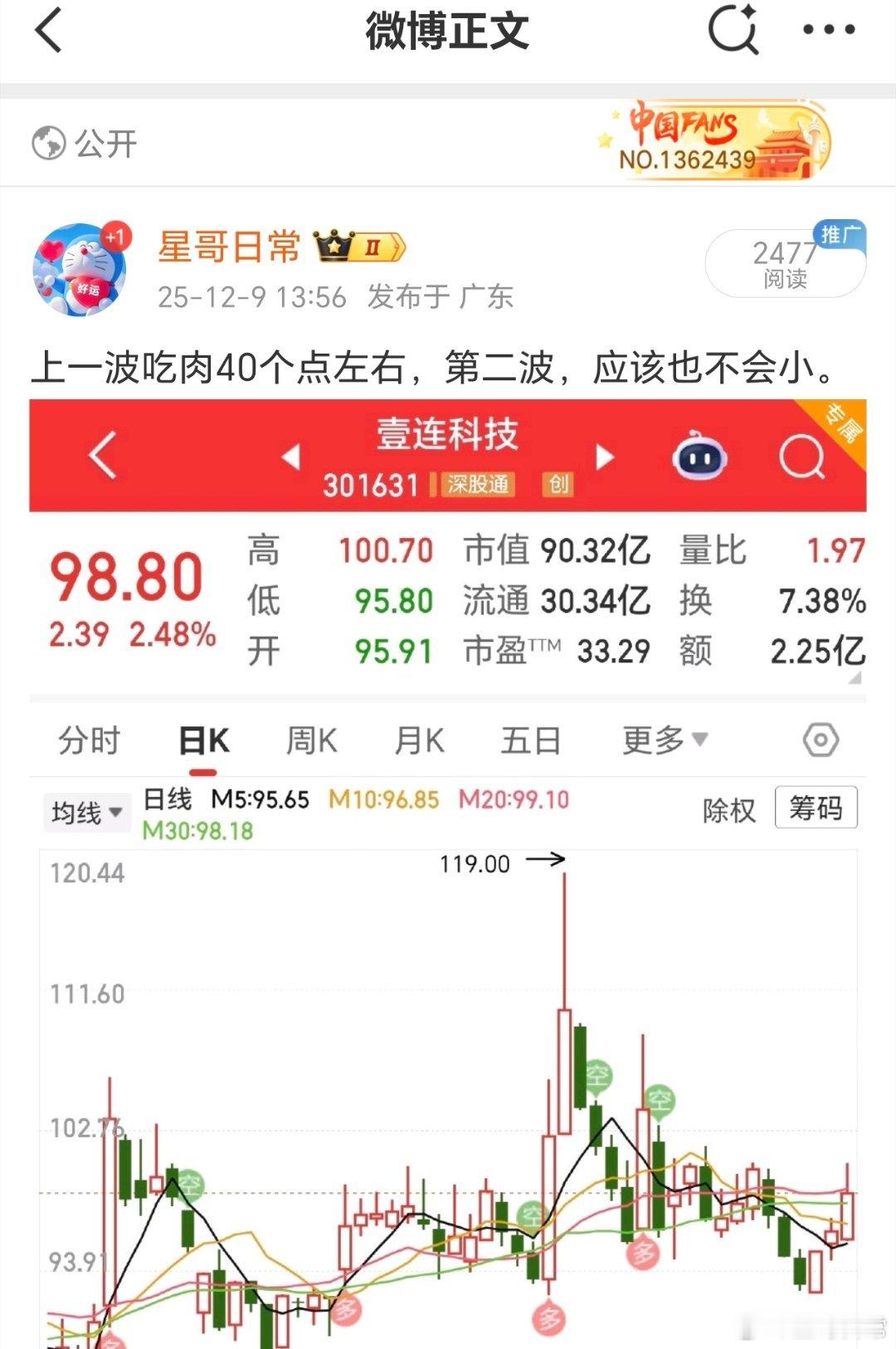 12月9日,到今天共9个交易日,肉13点。少了点,但也还好,第二浪,可以到肚子里
