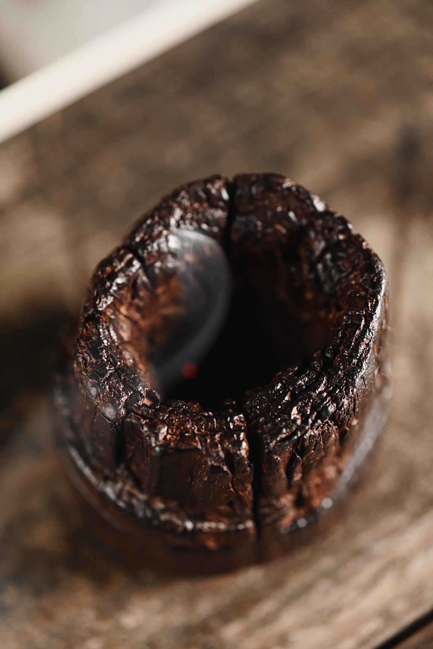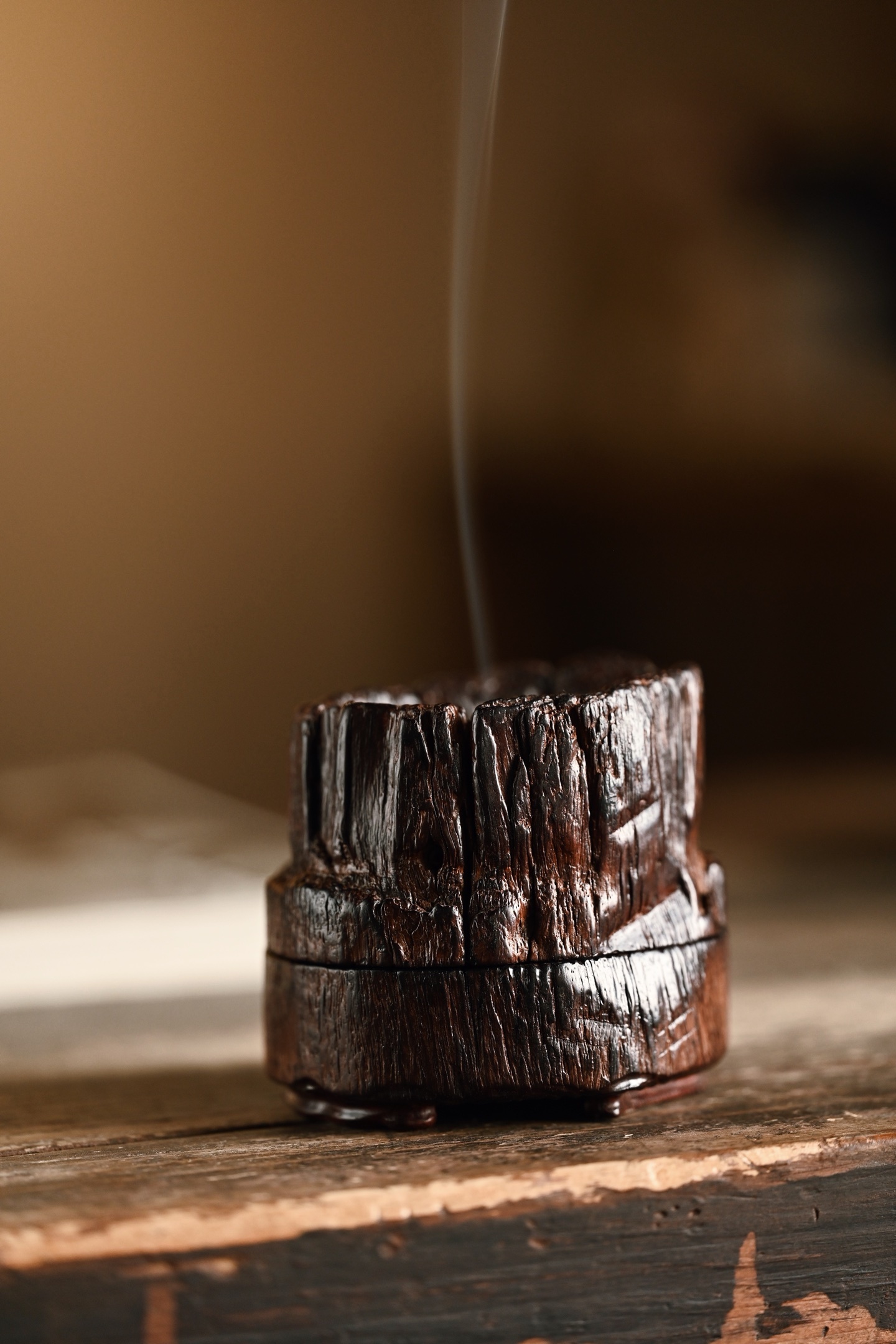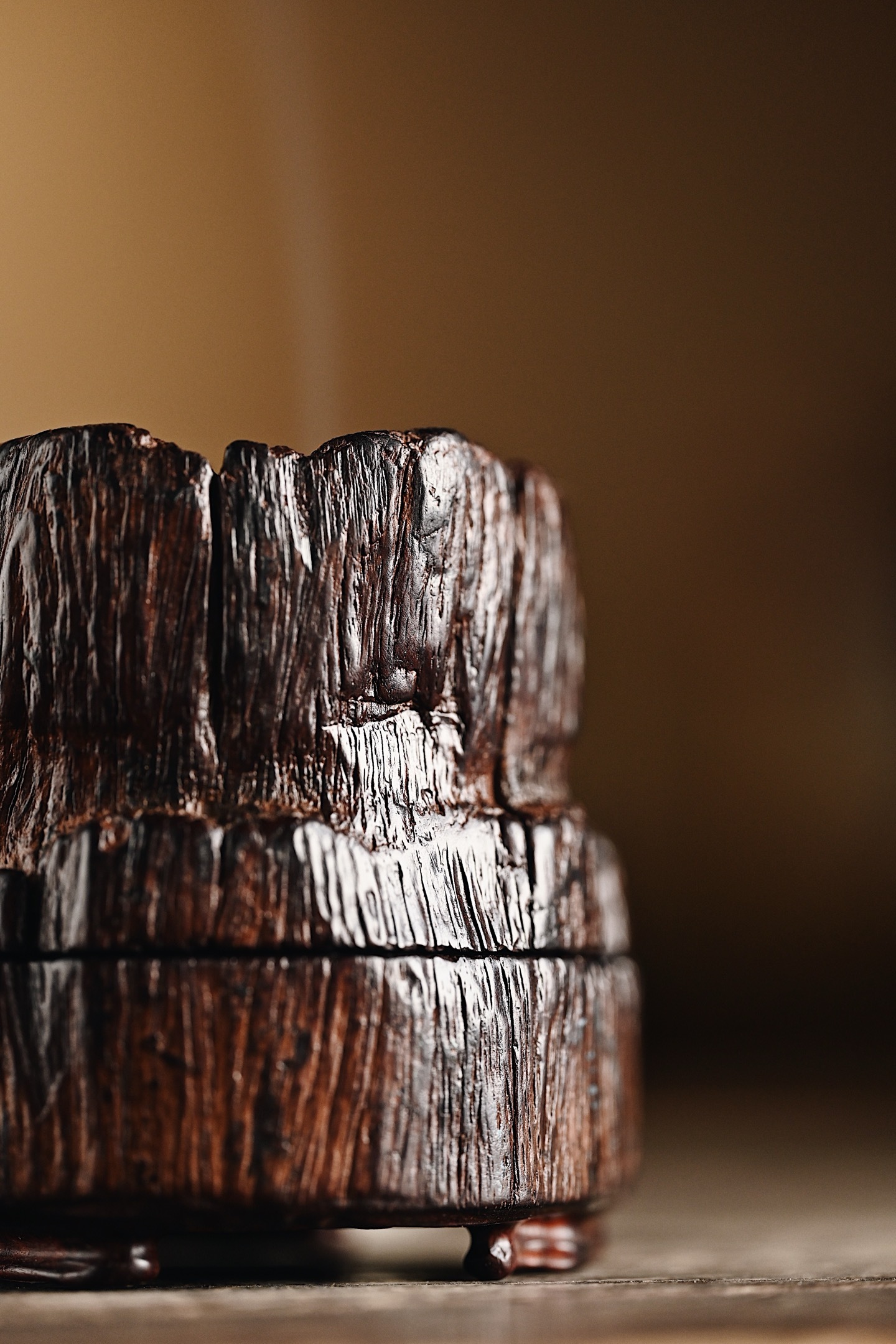 紫檀皮沙 | 小蓬莱 香炉天然皮沙老料,取型难得一见,中部天然凹陷,风化纹似流云,焚香香雾弥漫,自有蓬莱仙境之感,韵味高雅。8.1*8*9.5cm 210g