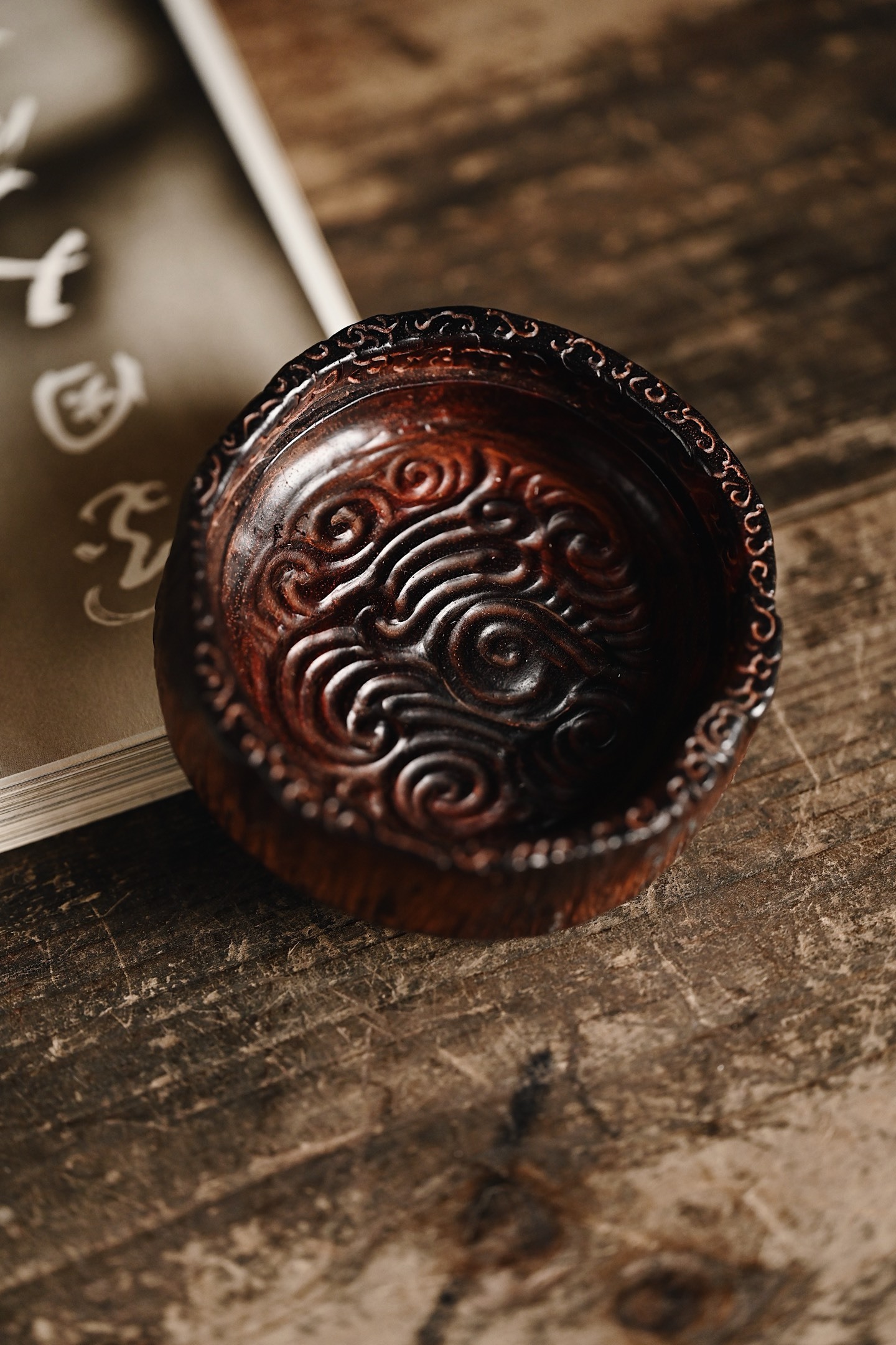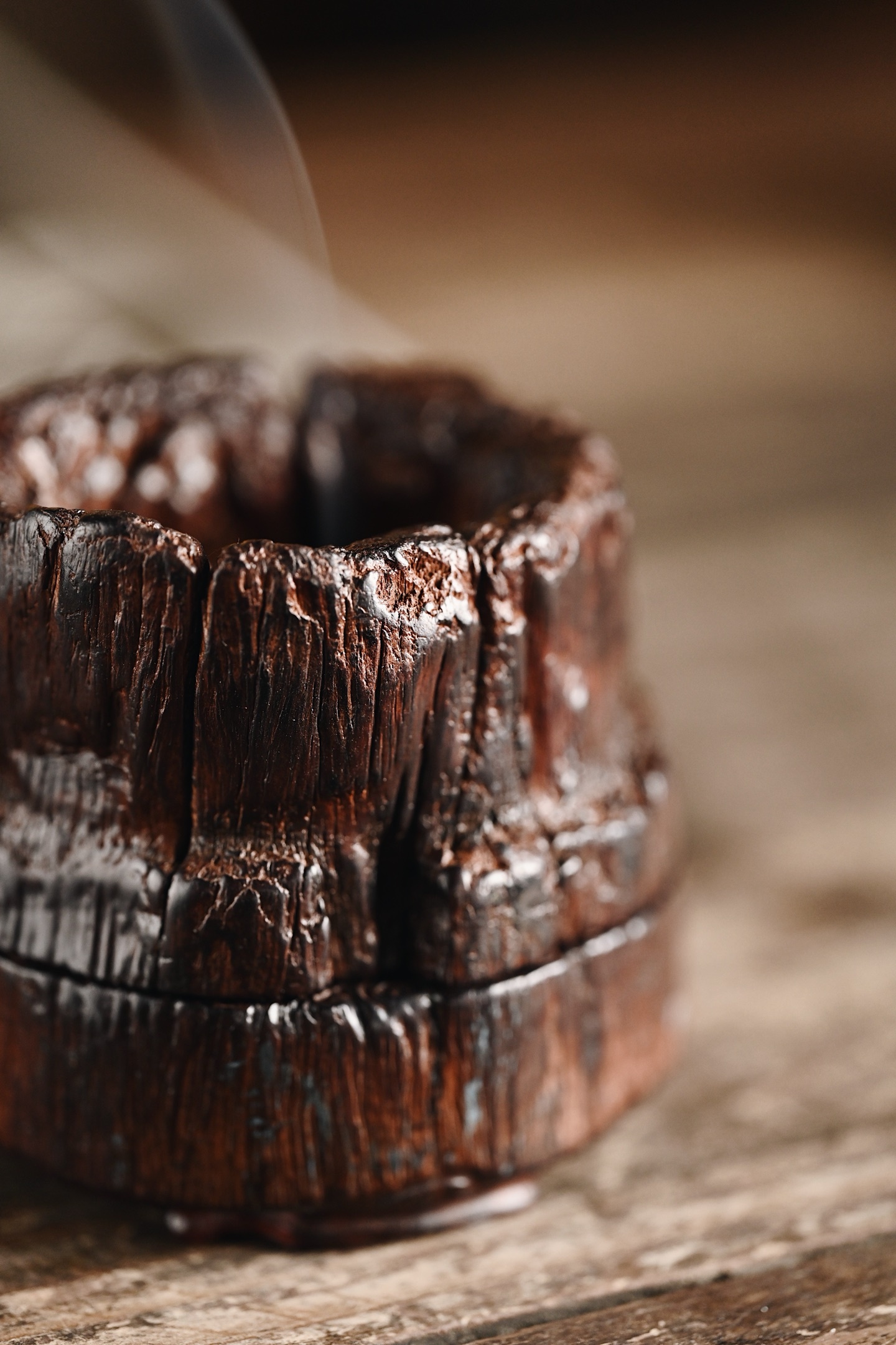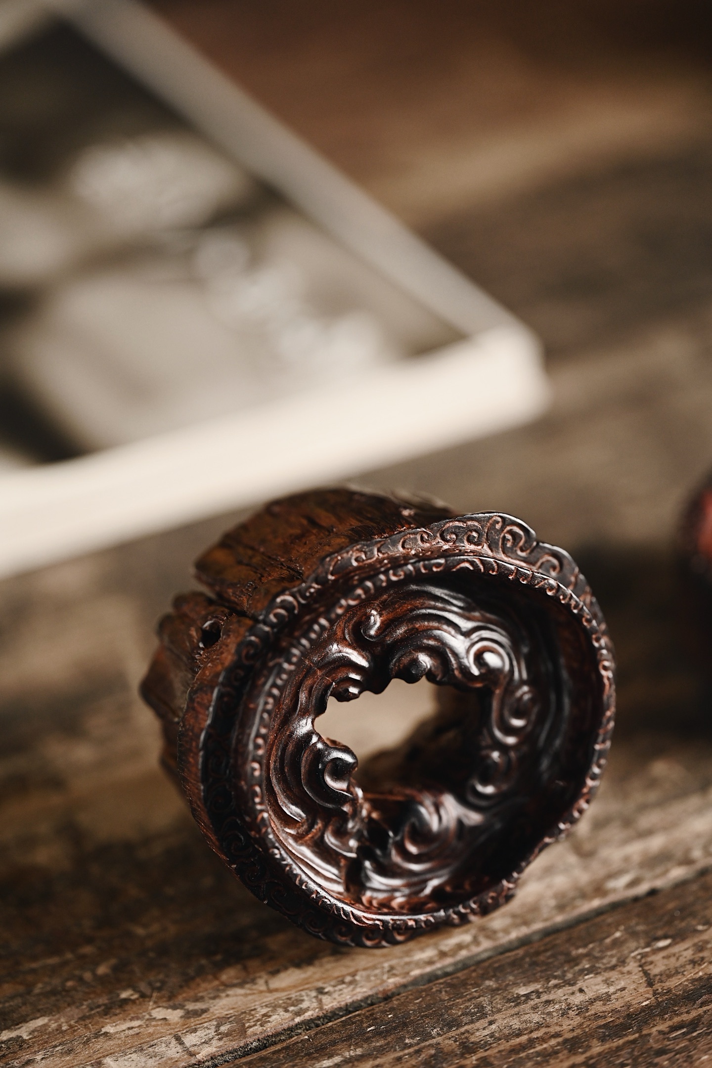 紫檀皮沙 | 小蓬莱 香炉天然皮沙老料,取型难得一见,中部天然凹陷,风化纹似流云,焚香香雾弥漫,自有蓬莱仙境之感,韵味高雅。8.1*8*9.5cm 210g