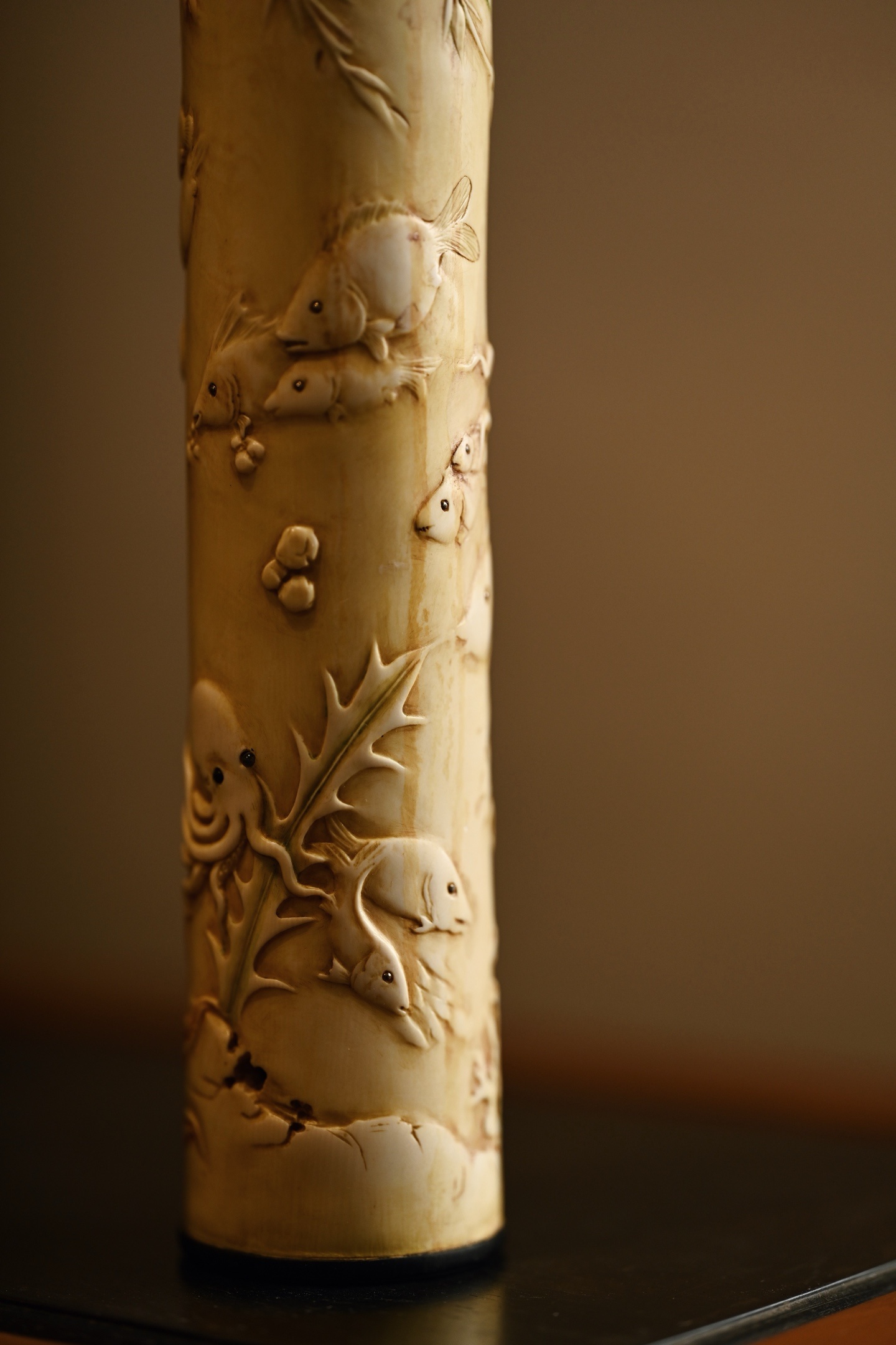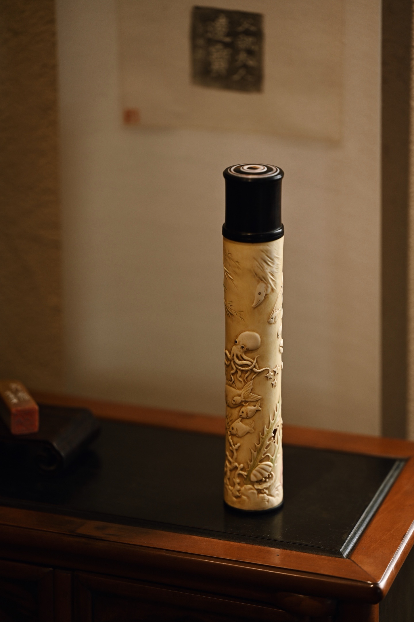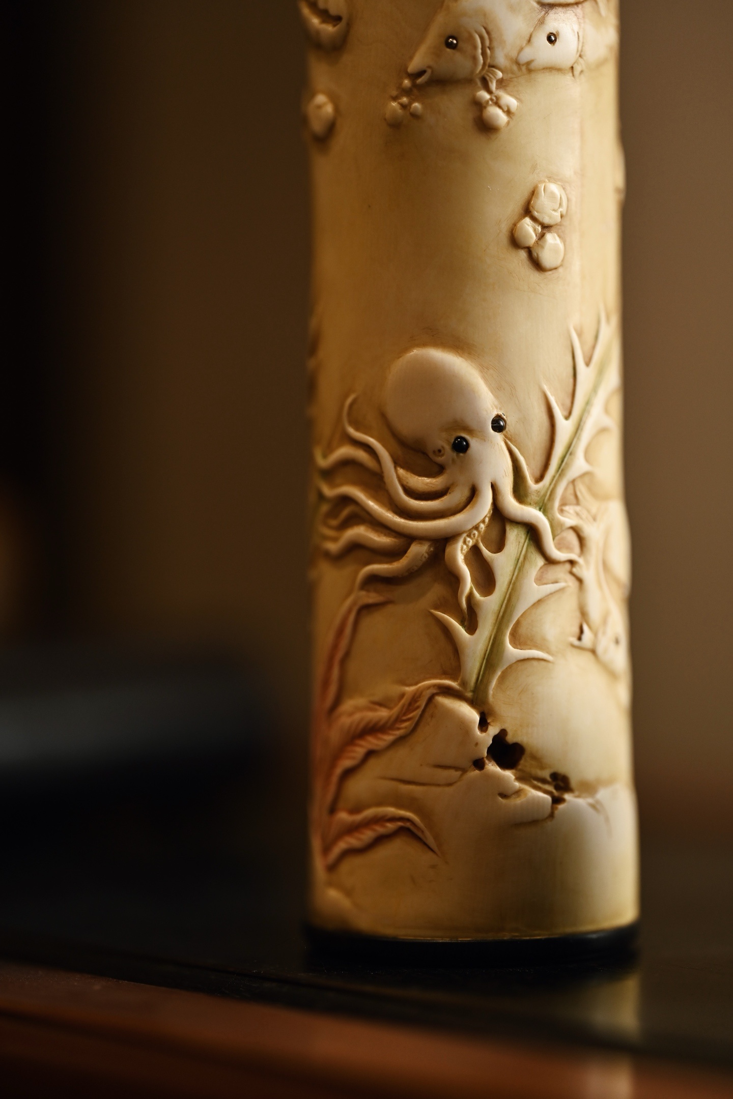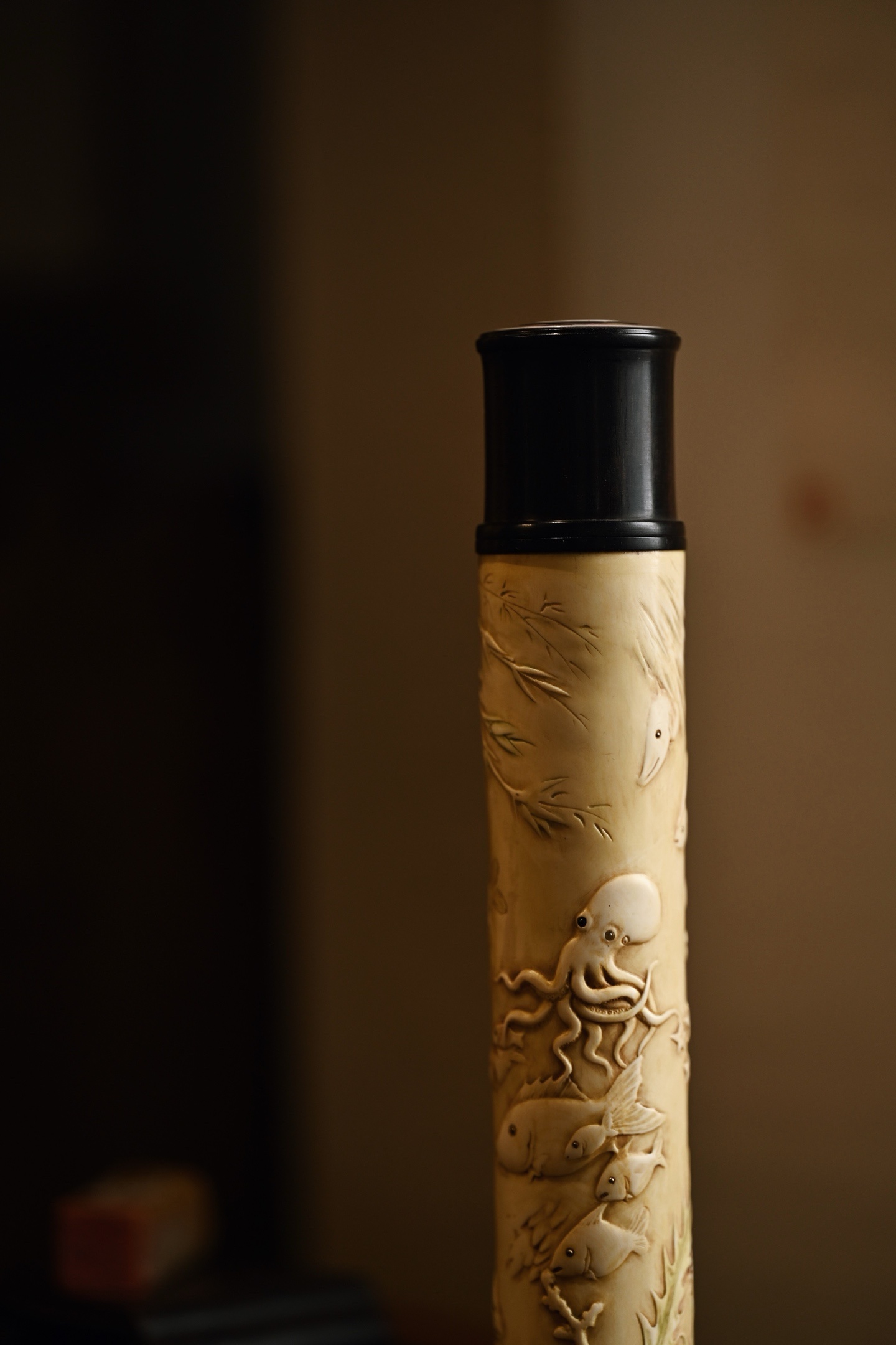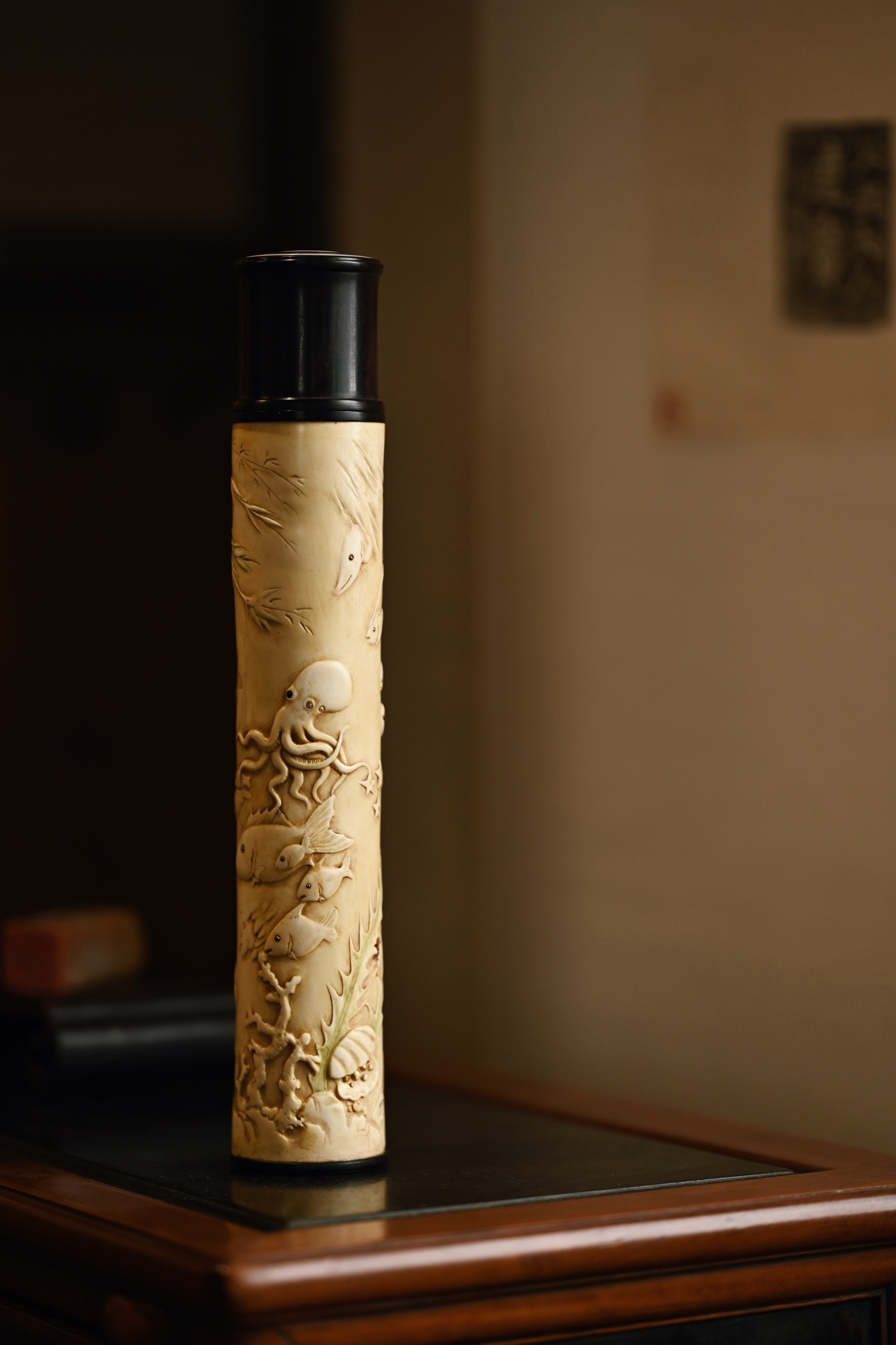 猛犸仿古 | 海底世界 香筒手工雕刻层次分明,施以彩绘,海藻似随水流舞动,游鱼成群,灵动游弋,八爪鱼生动形象,满目生机盎然,充满海底之趣,有八方来财的寓意。3.7*3.7*21cm 182g