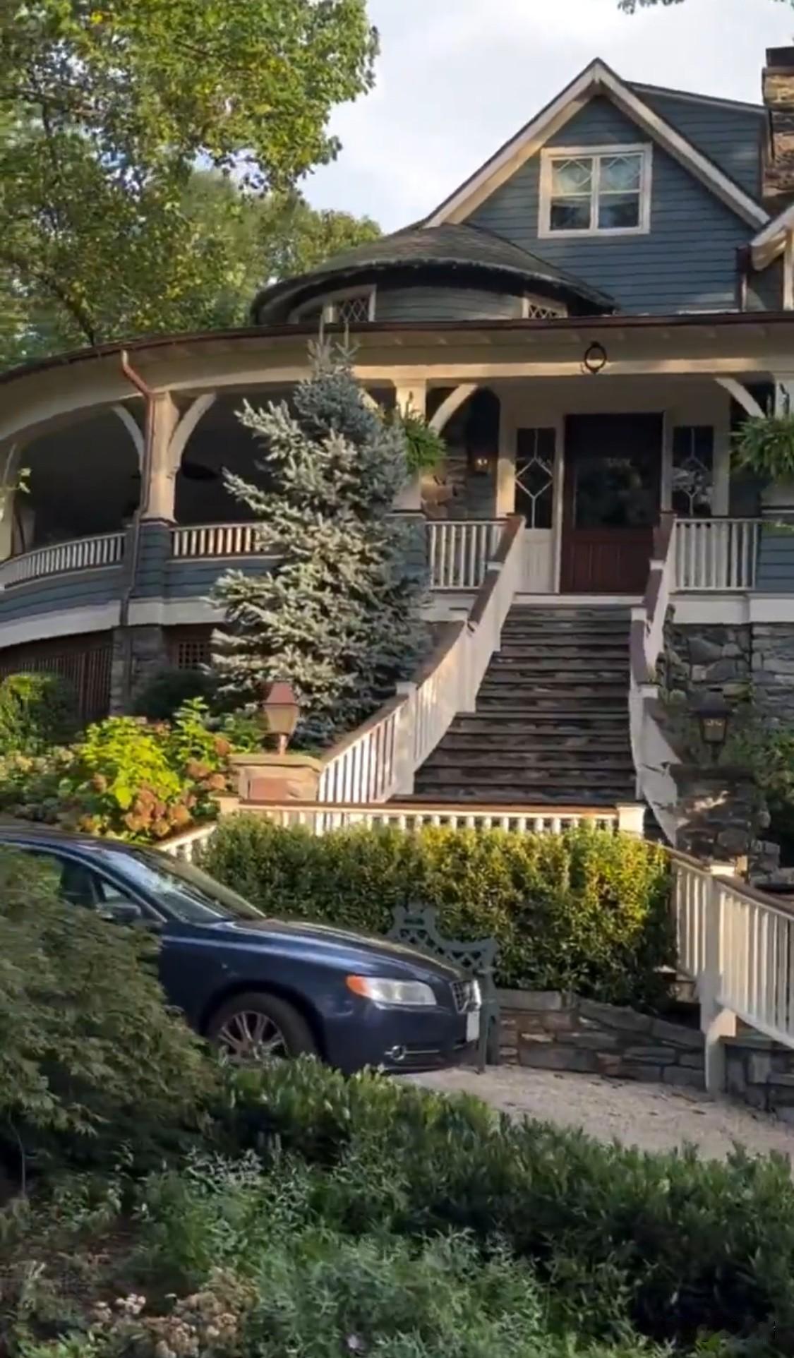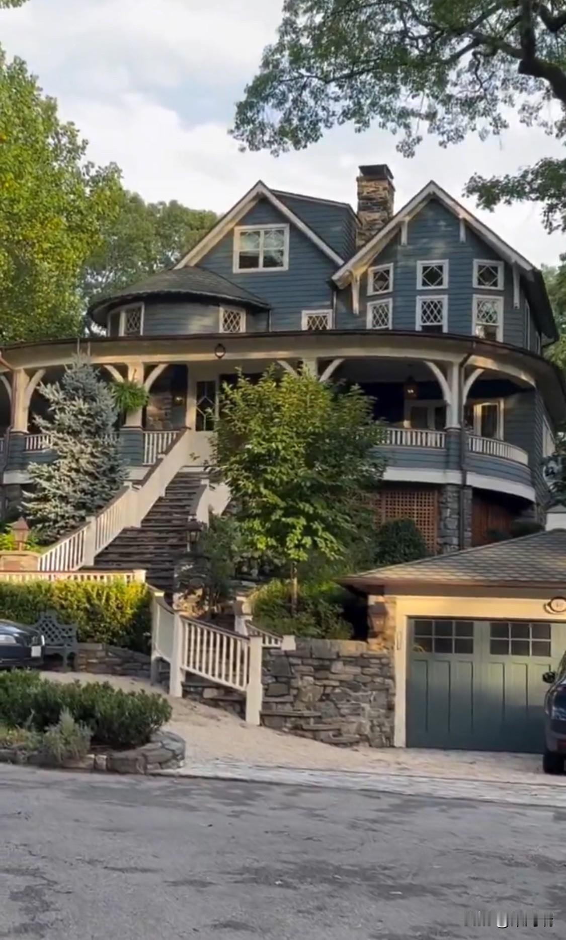 这栋位于纽约州布朗克斯维尔(Bronxville, New York)的壮观住宅以其独特的环绕式门廊和多层次的景观而闻名。 这座房子位于布朗克斯维尔的劳伦斯公园(Lawrence Park)历史街区,坐落在一个小山丘上。 它是一栋历史悠久的维多利亚风格或木瓦风格(Shingle Style)住宅,由建筑师威廉·贝茨(William Bates)设计。它建于1902年,最初是乔治·阿姆斯特朗·卡斯特将军(General George Armstrong Custer)的遗孀伊丽莎白·卡斯特(Elizabeth Custer)的住所。 该住宅最引人注目的特点是其俯瞰村庄的环绕式阳台和门廊,以及通往正门的一长串台阶。