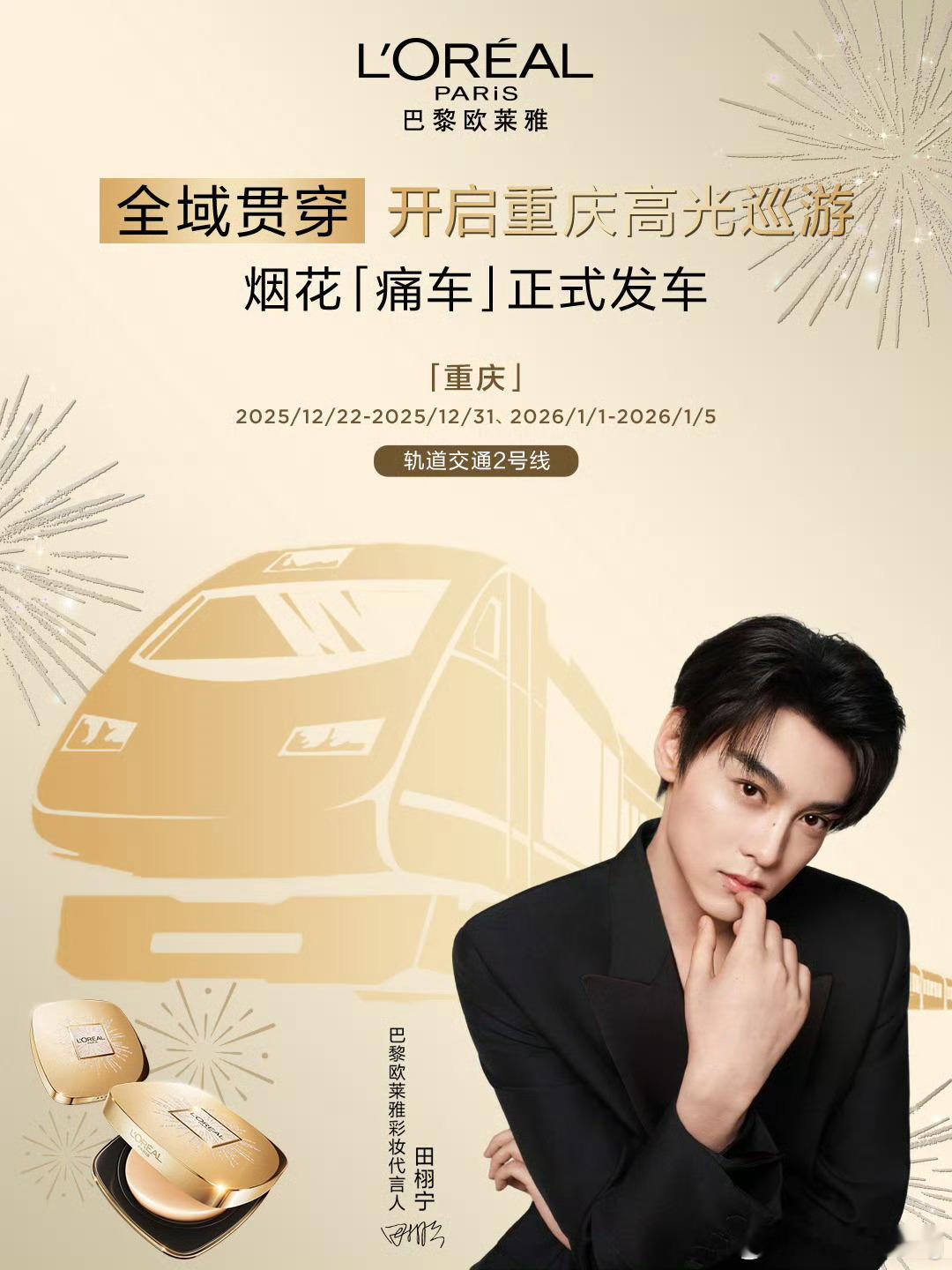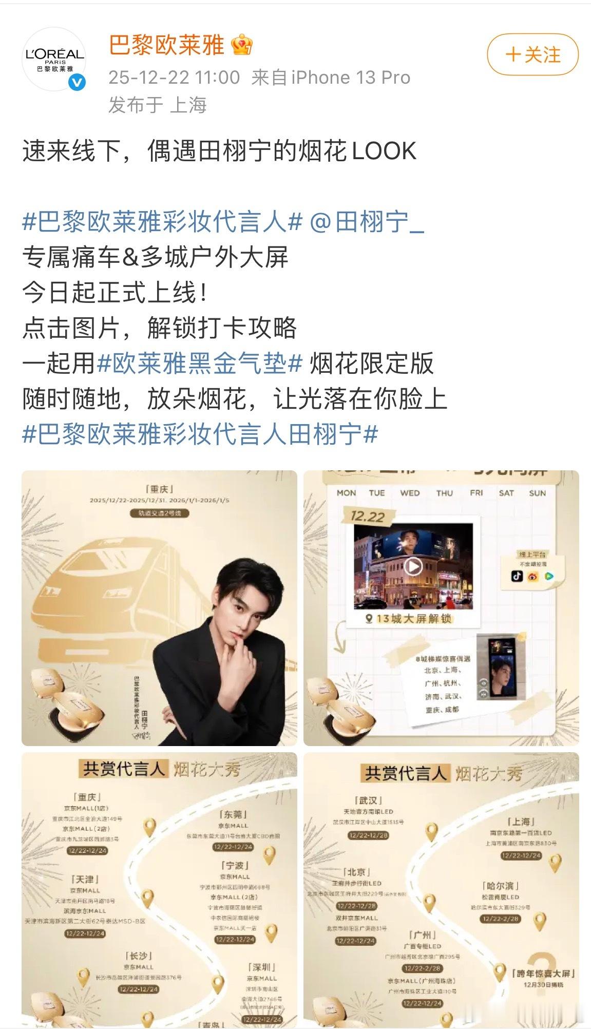 巴黎欧莱雅彩妆代言人欧莱雅官宣田栩宁彩妆代言人…不仅安排了地广 还安排了烟花秀和痛车…排面拉满…此外 这次田栩宁和欧莱雅的合作,也是欧莱雅第一次合作就给代言人的title,诚意满满…体现了田栩宁超强的商业价值…