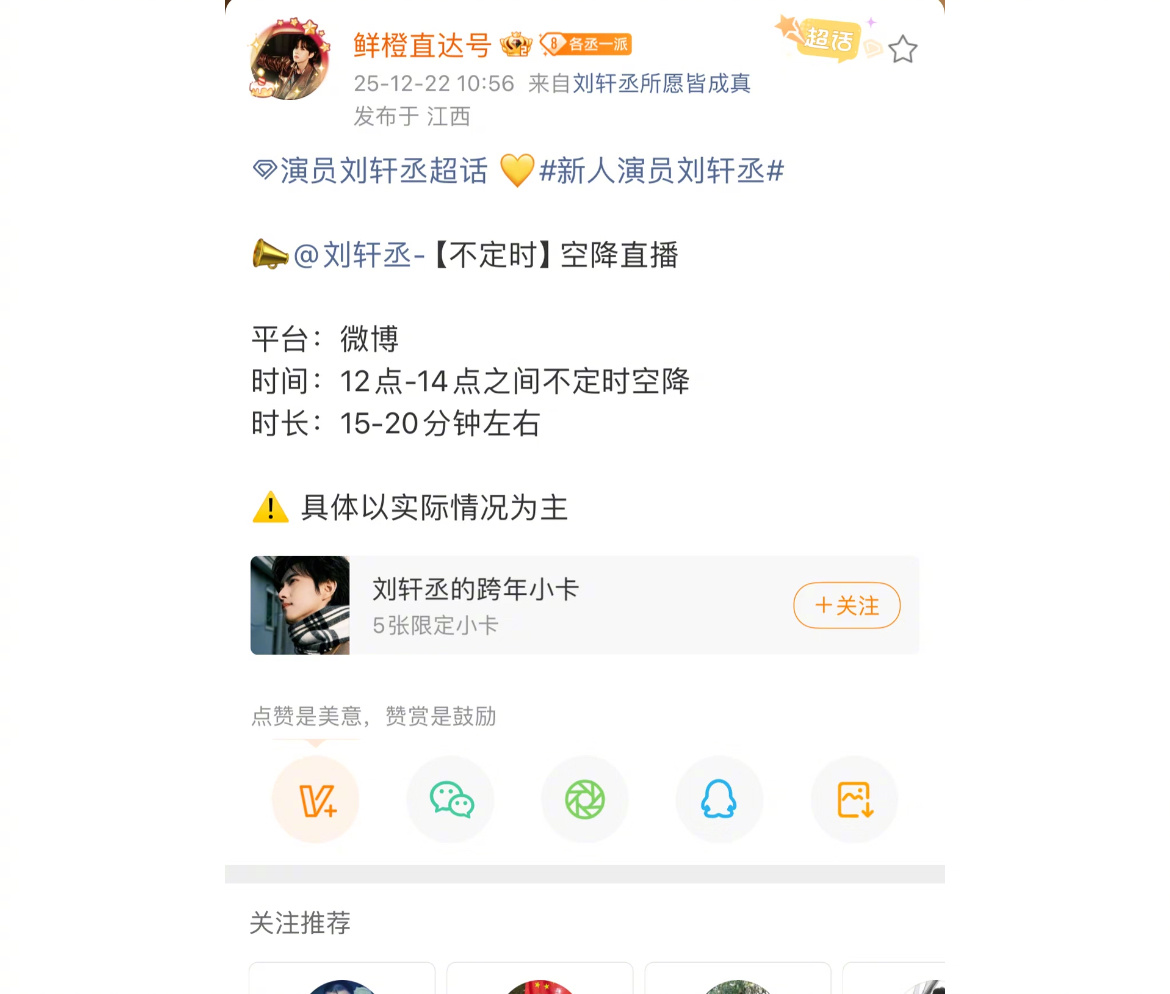 刘轩丞空降直播 刘轩丞直播预热 铮铮今天会空降直播 燥候